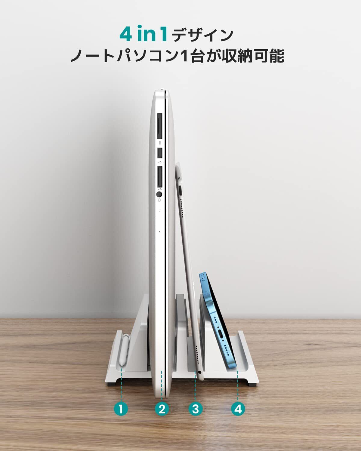 Klearlook ノート パソコン スタンド 縦置き 4-in-1 pc スタンド パソコン 収納 幅調節可能 六角レンチ付き 滑り止め 冷却 安定 ABS素材 ホワイト