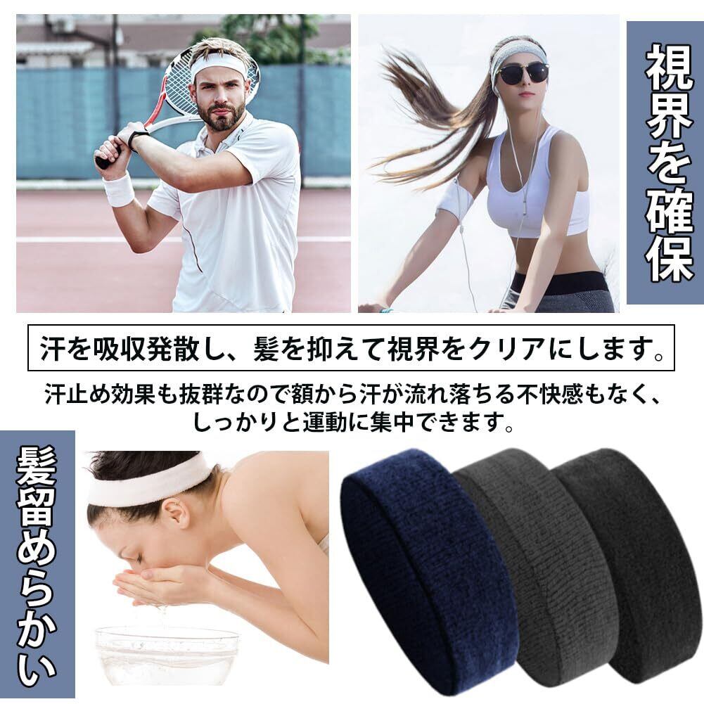 ヘッドバンド 汗止め ヘアバンド 吸汗通気 ニットヘアバンド スポーツ ヘアターバン 伸縮性耐久性 柔らか 運動用 洗顔用 サッカー ランニング ダンス ヨガ ジョギング 男女兼用 3本セット
