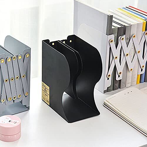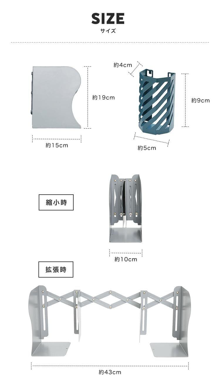 【伸縮でスペースを調節】10cm-43cmまでの幅調整ができる伸縮式のデザインで本の厚みに応じで調節し、ぴったり収まるので省スペースになります。散らかったデスクを整理整頓し、卓上の空間を有効活用します。