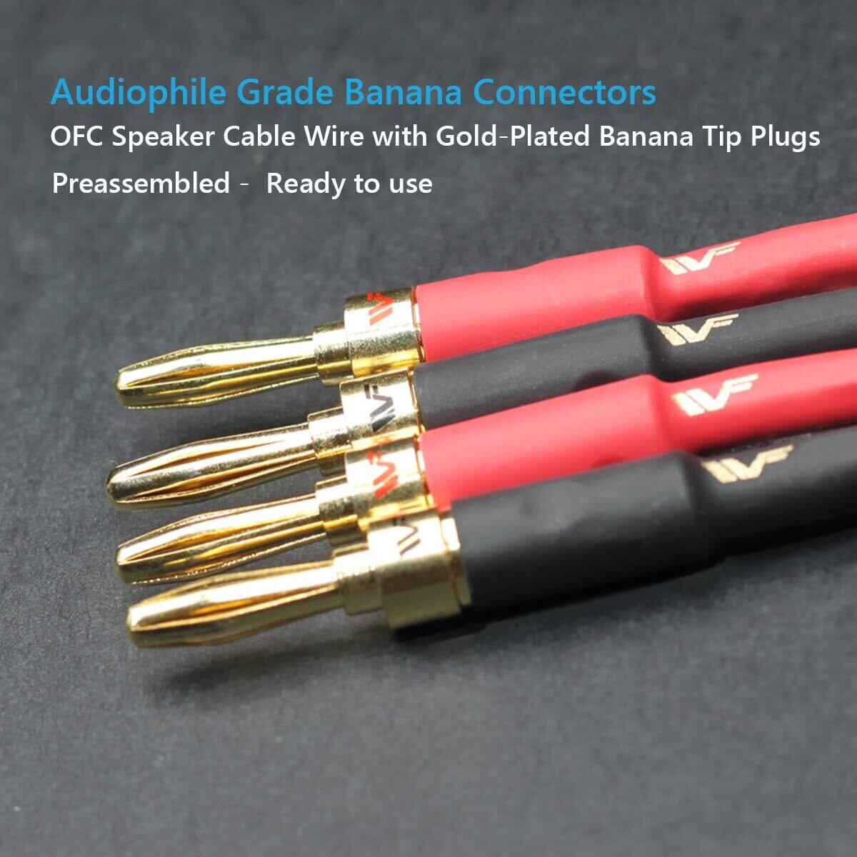パッケージ内容: 2x 3m 14 AWG OFC スピーカーケーブル バナナプラグ付き