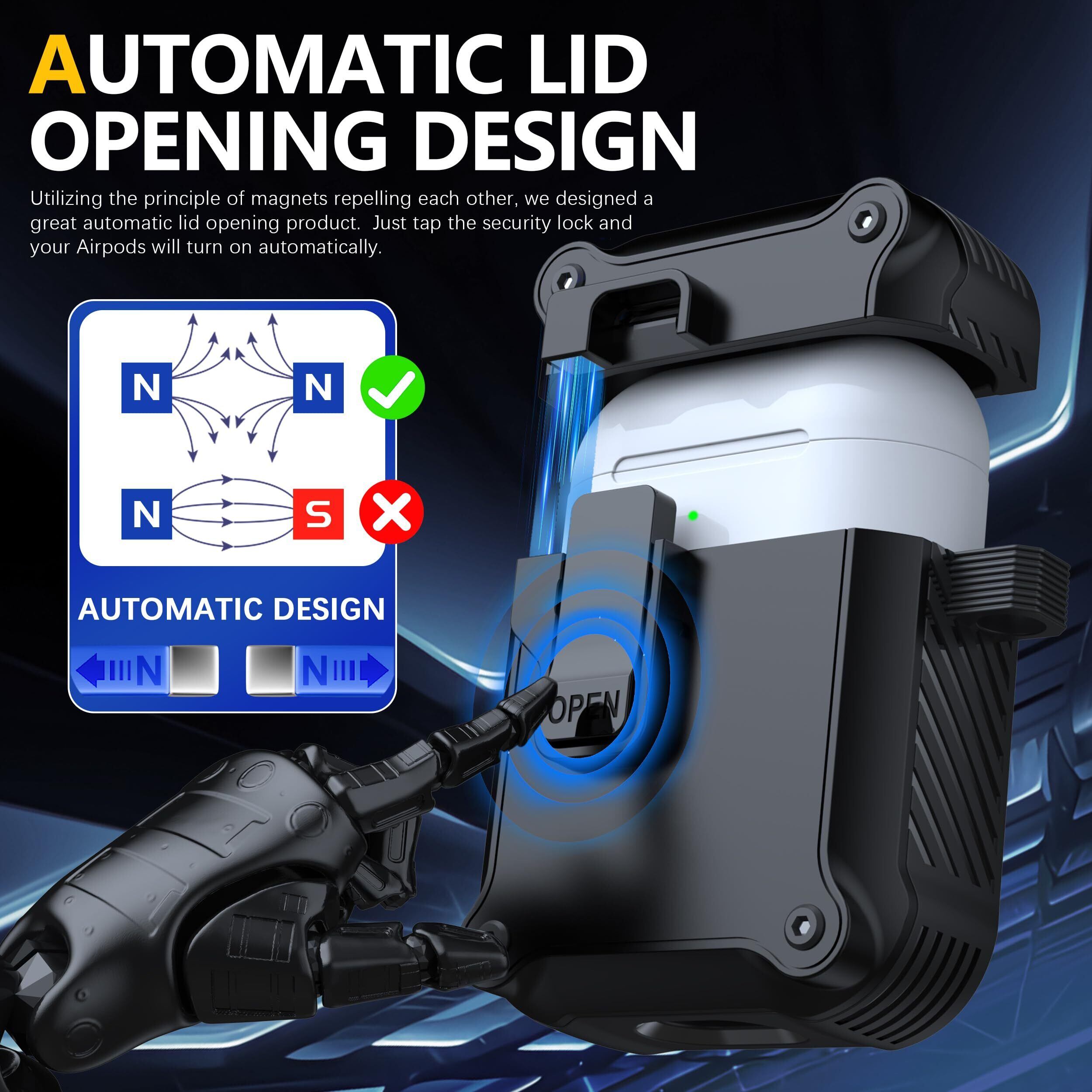 【ユニークなセキュリティロックと自動ポップアップ】アップグレードされたセキュリティロック設計により、開閉が簡単になります。「OPEN」ボタンを押すと、ケースの上部が自動的に開きます。 AirPods 充電ケースをしっかりと閉じた状態に保ち、カバーが落ちることを防ぎます。