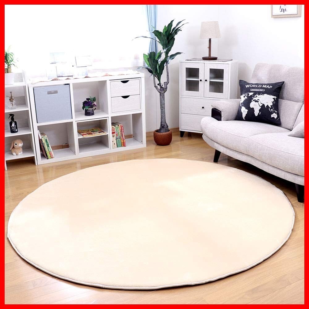 フリーリー ラグ 低反発ラグ 極厚25mm 円形 直径 140cm 抗菌・防ダニ加工 厚手 ラグマット カーペット オールシーズン 滑り止め付 マイクロファイバー サイズ (S無地・ベージュ)
