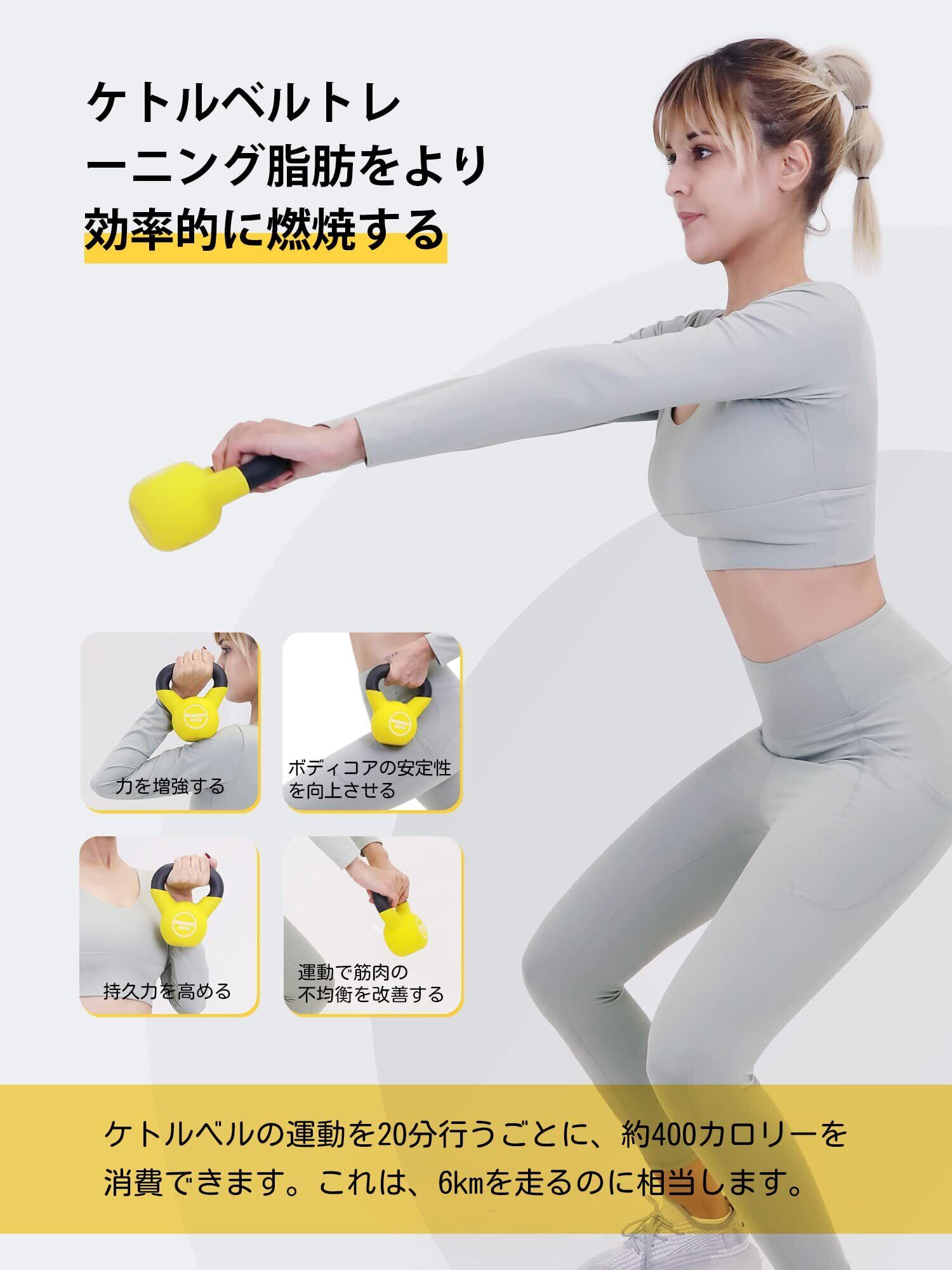 重量は4kgから20kgまで選択可能です。他のウェイトトレーニング器具と比べ、より多くの体脂肪を燃焼させる効果があります。多様な筋肉を一つの動作で効果的に鍛えることができ、体幹強化、全身運動、ダイエット、ボディメイクに最適です。バキバキのボディを目指す方には、ぜひ当社のケトルベルをお勧めします。
