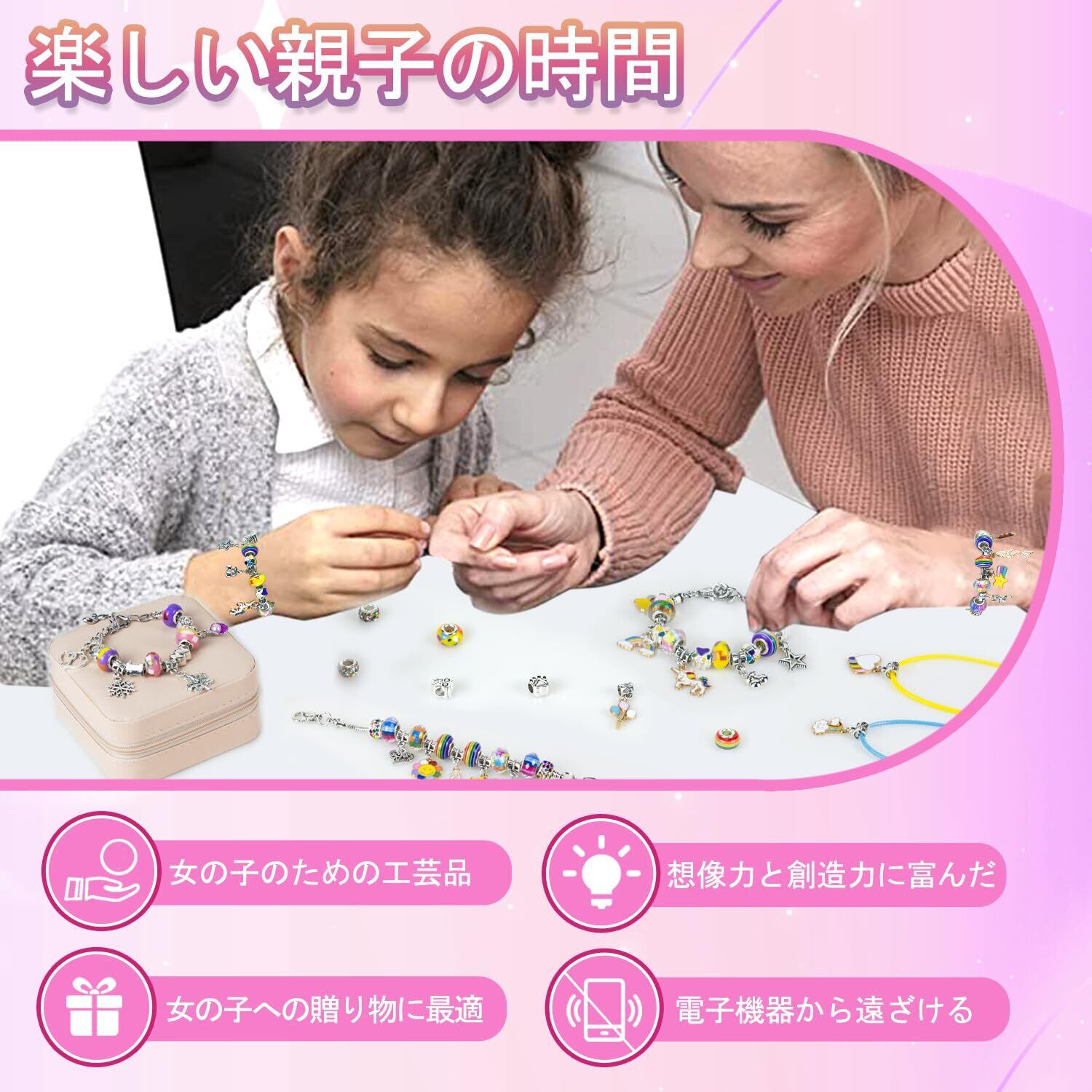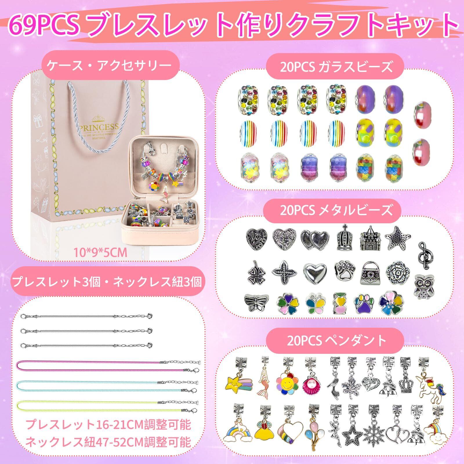 [Hymaz] アクセサリーキット ブレスレット作り 宝石おもちゃ 69点セット おしゃれ 紐通しおもちゃ ビーズ おもちゃ 手工芸品 DIY製作 女の子 チャームブレスレット 製作キット 収納ケース付き ペンダント キラキラ 女の子 ギフト 記念日 誕生日 プレゼント クリスマス