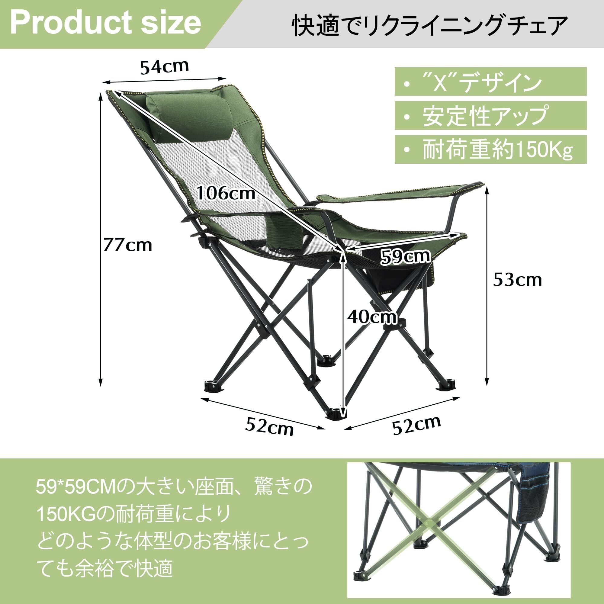 【人間工学デザイン&耐荷重】 背もたれは人間工学に基づいて、頭、臀部、背中を支えるように設計されており、横になっているときに余暇を楽しむことができます。 製品の耐荷重性能は高水準でテストされ、145kgの耐荷重確保されています。どんな状況においても、信頼性と安心感を持って使えるアウトドア椅子です。