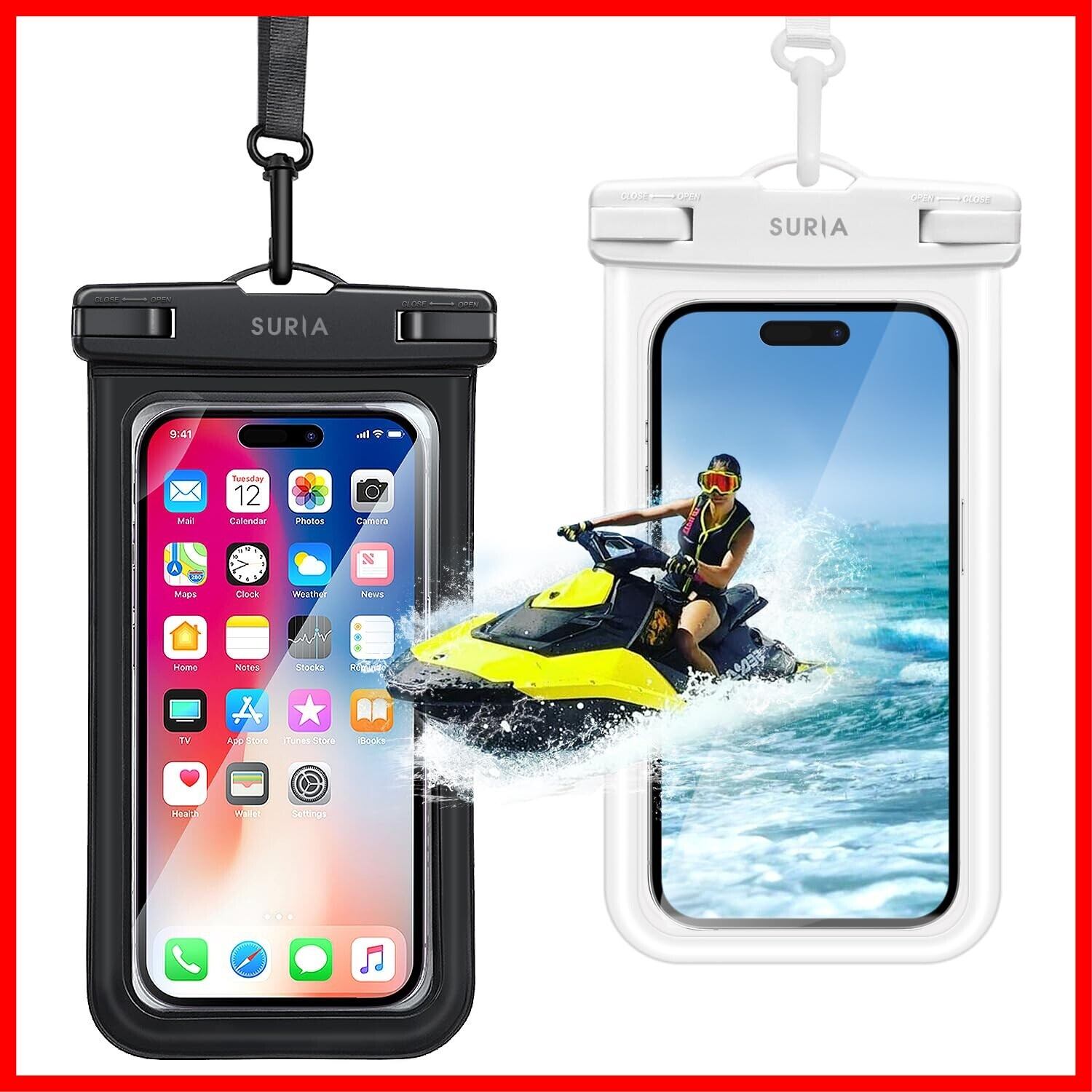 【新設計・2枚セット】 スマホ 防水ケース IPX8 完全防水 防水スマホケース 首かけ 両用 指紋認証/顔認証対応 タッチ可能 ストラップ付き iPhone/Android各種スマホ対応 携帯防水ケース 気密性 水中撮影 通話 高透過率 お風呂 海 プール 釣り iPhone15/14/13/12/11 X XR XS 8 7 6.5インチまでに対応 (ブラックxホワイト(各一枚))