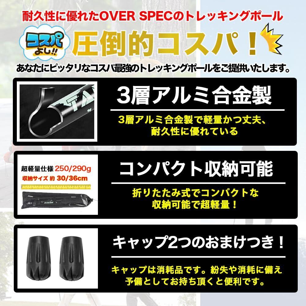 OVERSPEC トレッキングポール 2本セット 折りたたみ 軽量 250g 伸縮 日本語説明書付き アルミ製 コンパクト 収納バッグ付き 長さ調整可能 95-110cm伸縮可 ウォーキング ストック 登山ストック ステッキ ポール 男女兼用 トレッキングステッキ 登山 杖