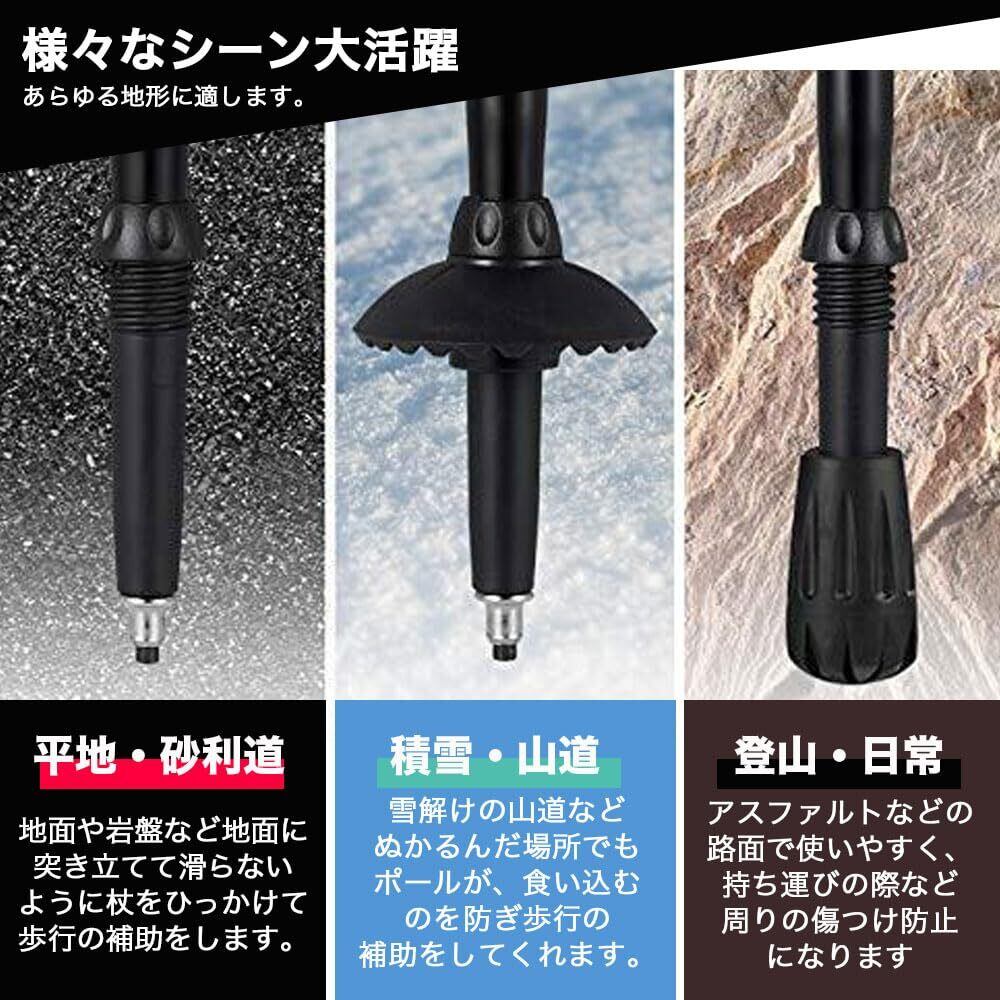 【商品仕様】本体:アルミ合金 グリップ:EVA材質 石突:タングステン鋼合金 収納時:30cm 使用時:95-110cm 重量:約250g(1本) 用途:登山、山登り、ノルディックウォーキング、ウォーキングなど