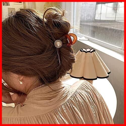 happykau ヘアクリップ大きめしっかりとまる 髪留め バンスクリップ ヘアくりっぷ ヘアアクセサリー大人 韓国 可愛い おしゃれ人気 パールのヘアクリップ 濃密な髪も使用可能 ヘアキャッチおしゃれ 贈り物 (ブラウンパール)