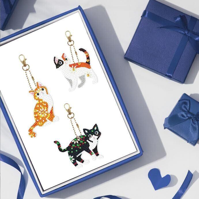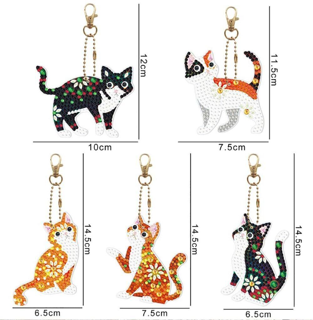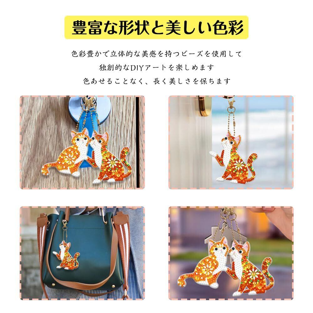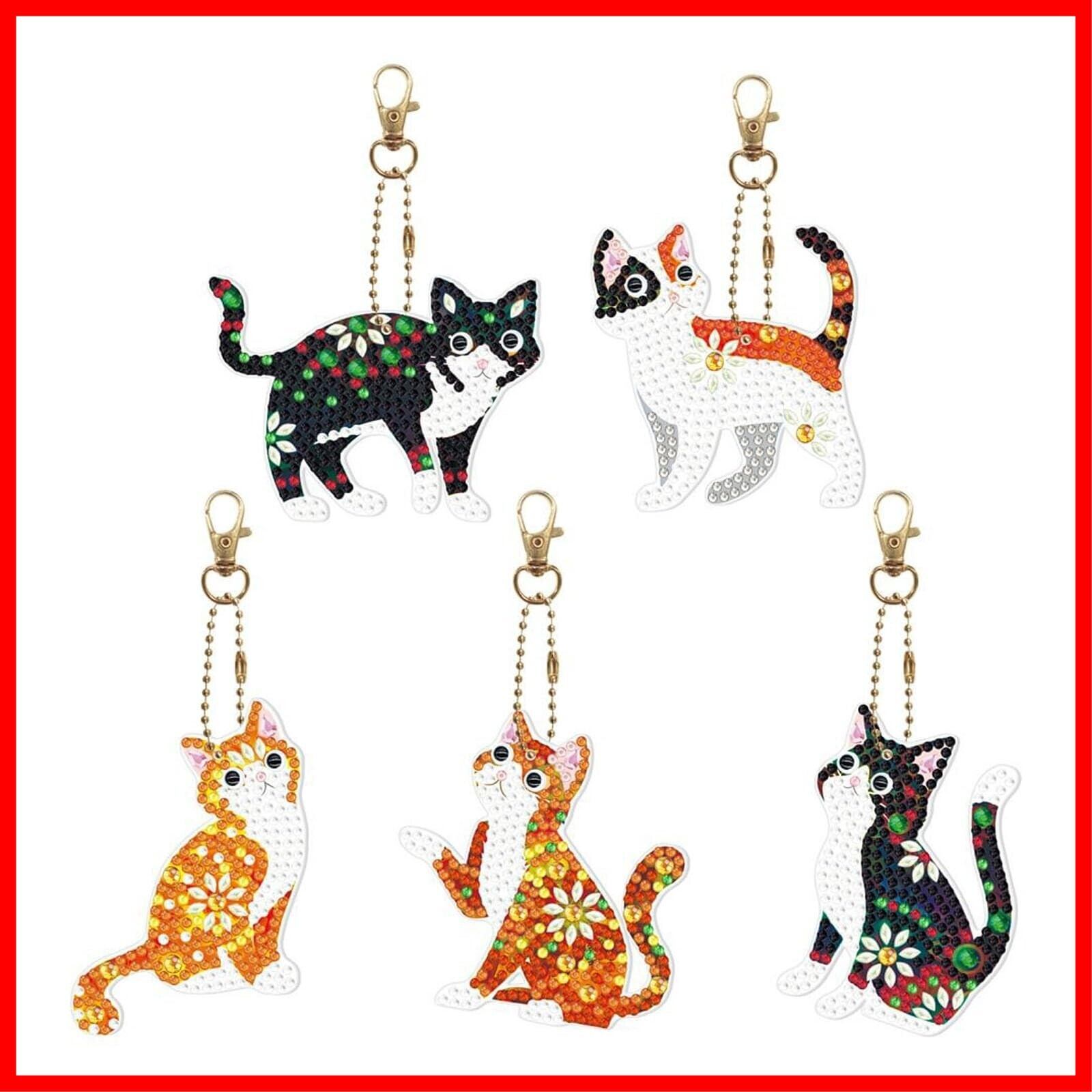 GOODCHI 5Dダイヤモンドアート キーホルダー 両面全貼り付け ペンダント DIY 手工芸品 ダイヤモン ド塗装 ーズアート キット 初心者でも楽しめる プレゼント(猫)