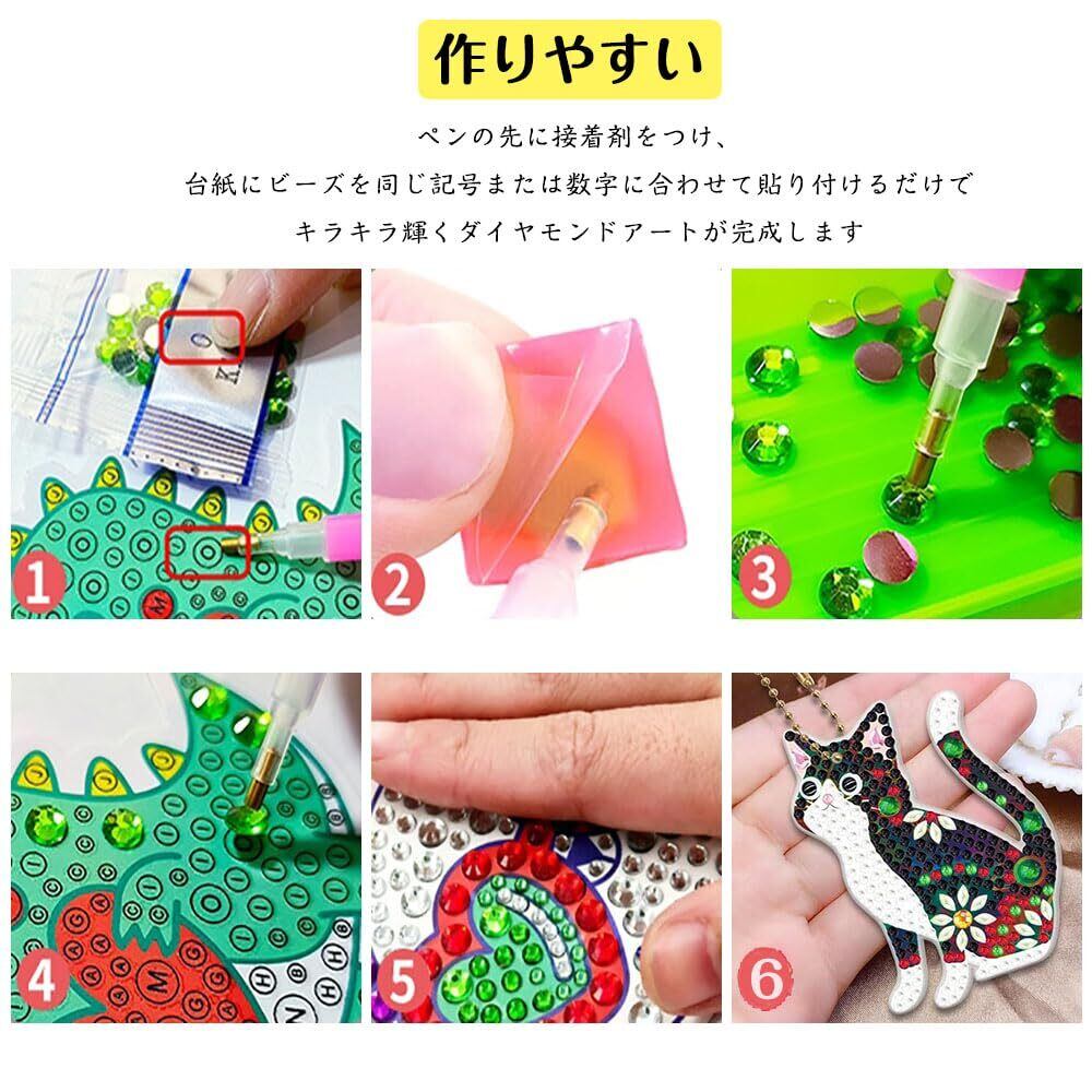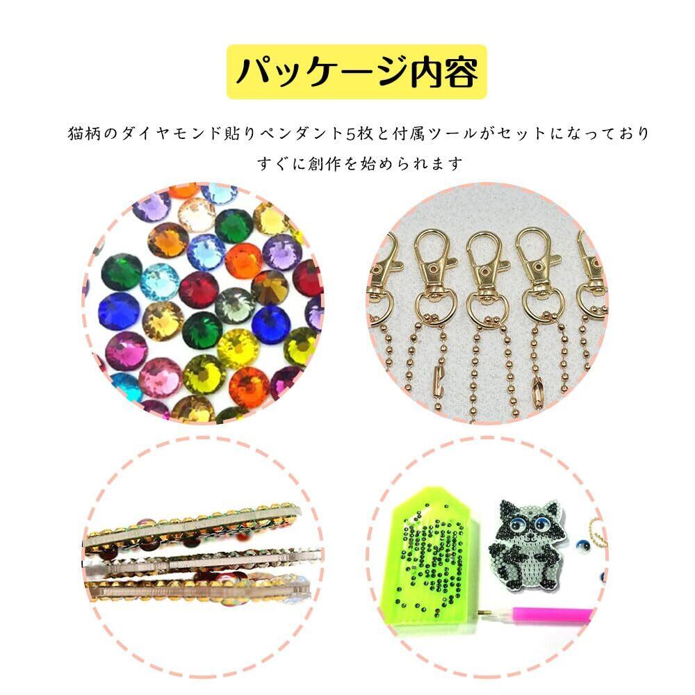 【パッケージ内容】猫柄のダイヤモンド貼りペンダント5枚と付属ツールがセットになっており、すぐに創作を始められます。