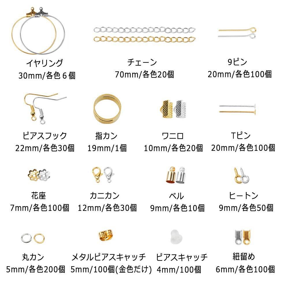 【セット内容】15種類パーツ+収納箱(19*13cm)+12枚ピアス台紙(6*10cm)+12枚OPP袋(14*7cm)