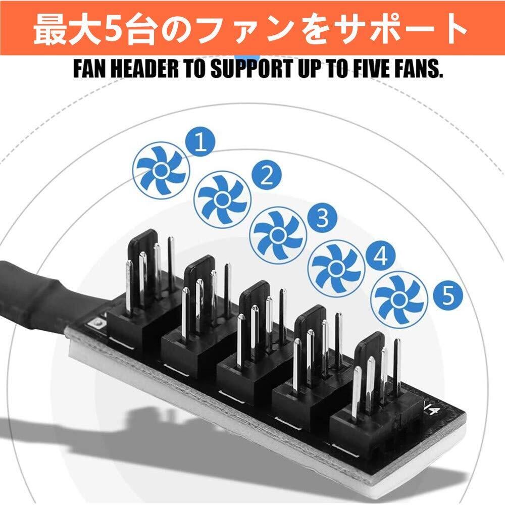 【PWMファン用ケーブル】PWMファンスプリッタケーブルにて多台のパソコンケースファンを1台のマザーボードファンヘッダーに接続可能です。サポート5チャンネルの同時起動ファン、マザーボードの不足の問題を解決。空気の流通を改善でき、パソコンの放熱機能を最大化にします。