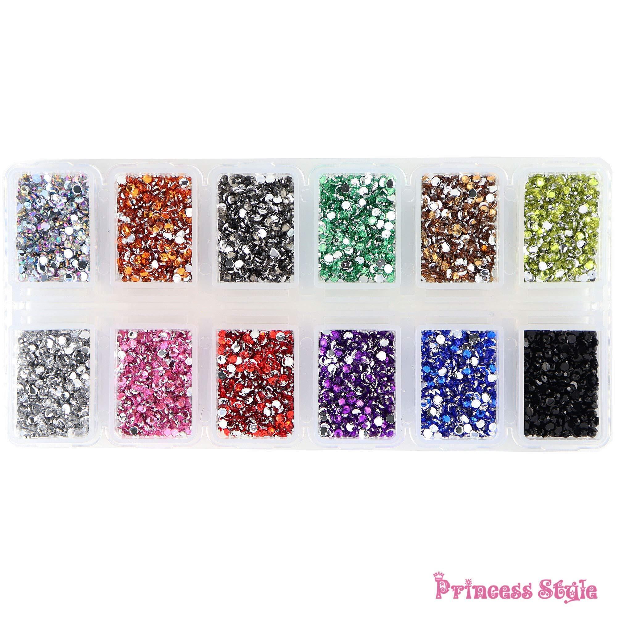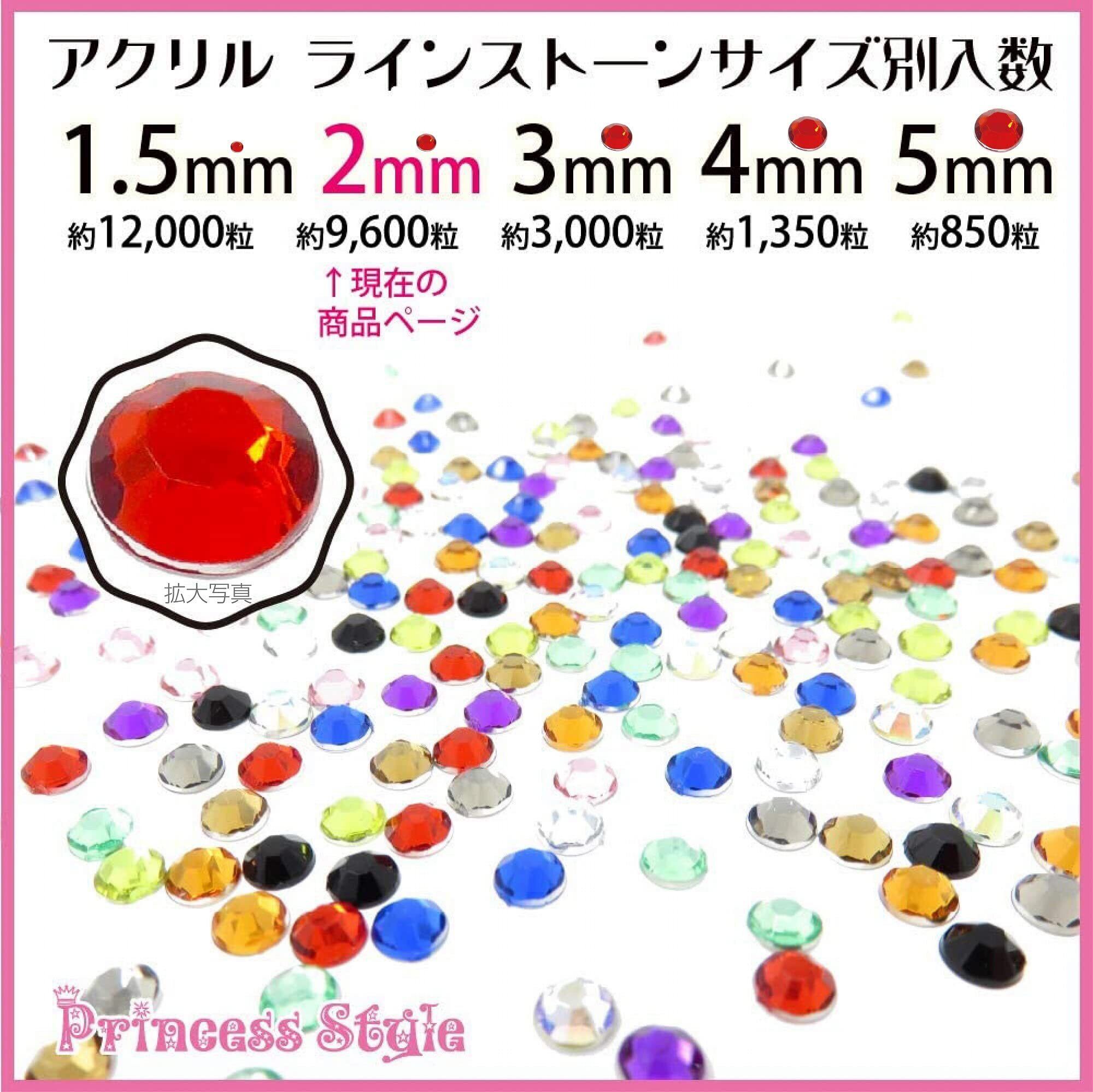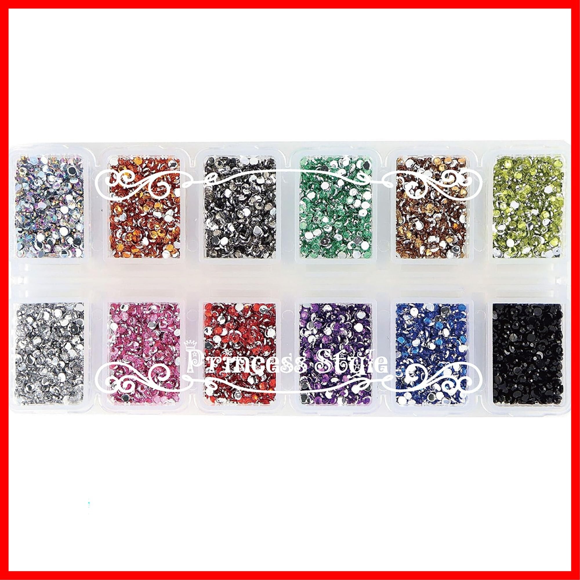 カラーラインストーン12色 ケース入 ネイル デコ用 大容量セット 2mm(約9,600粒)