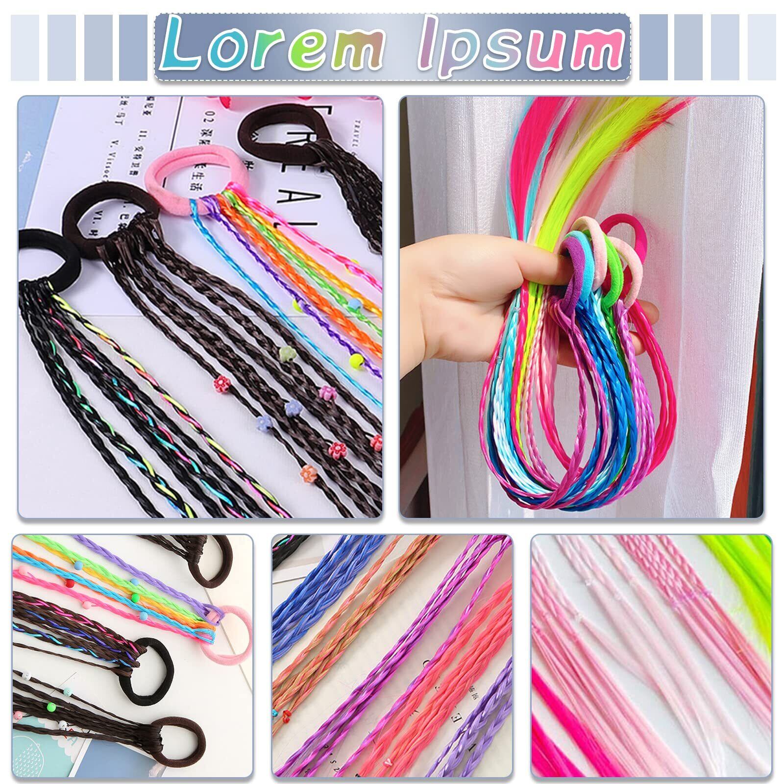 Hawkko ウィッグ エクステ 三つ編み 編み込み 子供 グラデーション ポニーテール つけ毛 ポイントウィッグ カラフル ウィッグ キッズ エクステンション ヘアエクステ ヒップホップ ダンス ゴム ひな祭り 発表会 パーティー 舞台用 派手髪 簡単装着 重ね付けOK 2個セット(グリーン*イエロー)