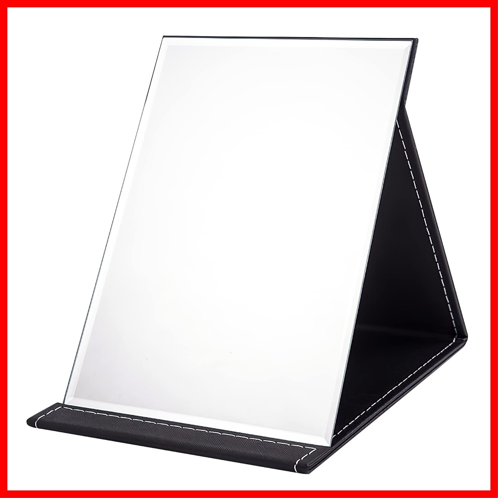 OWLKELA 卓上鏡 コンパクトミラー 折りたたみ手鏡 Sサイズスタンドミラー レザーカバー&割れにくい&おしゃれ 16*12cm ブラックかがみ