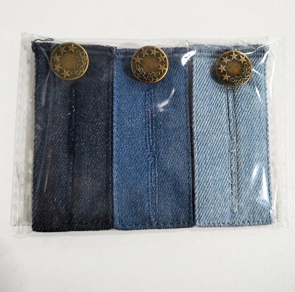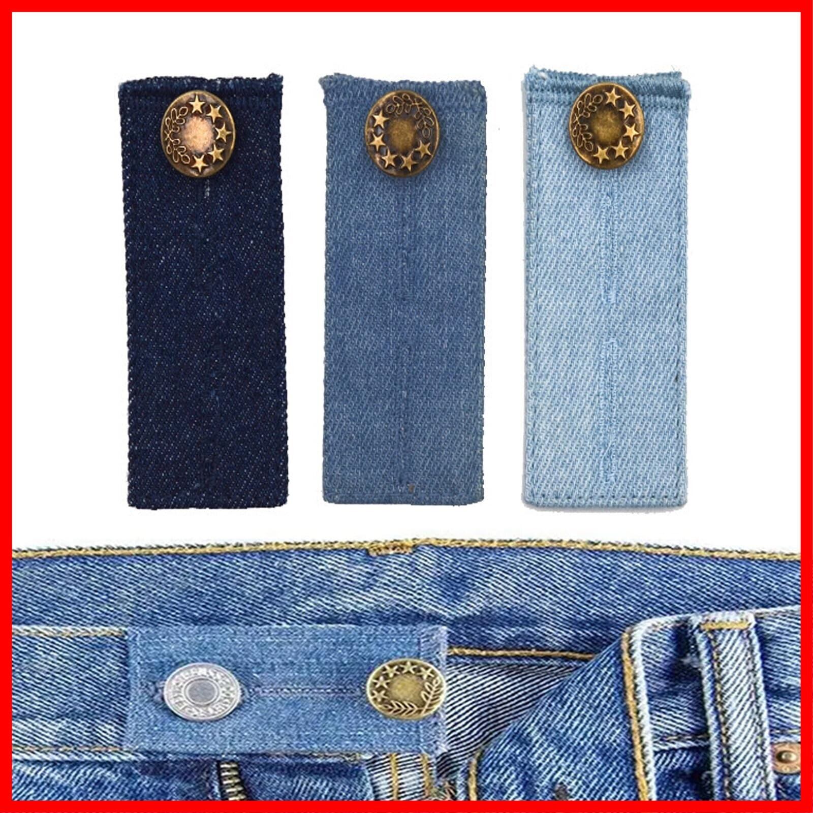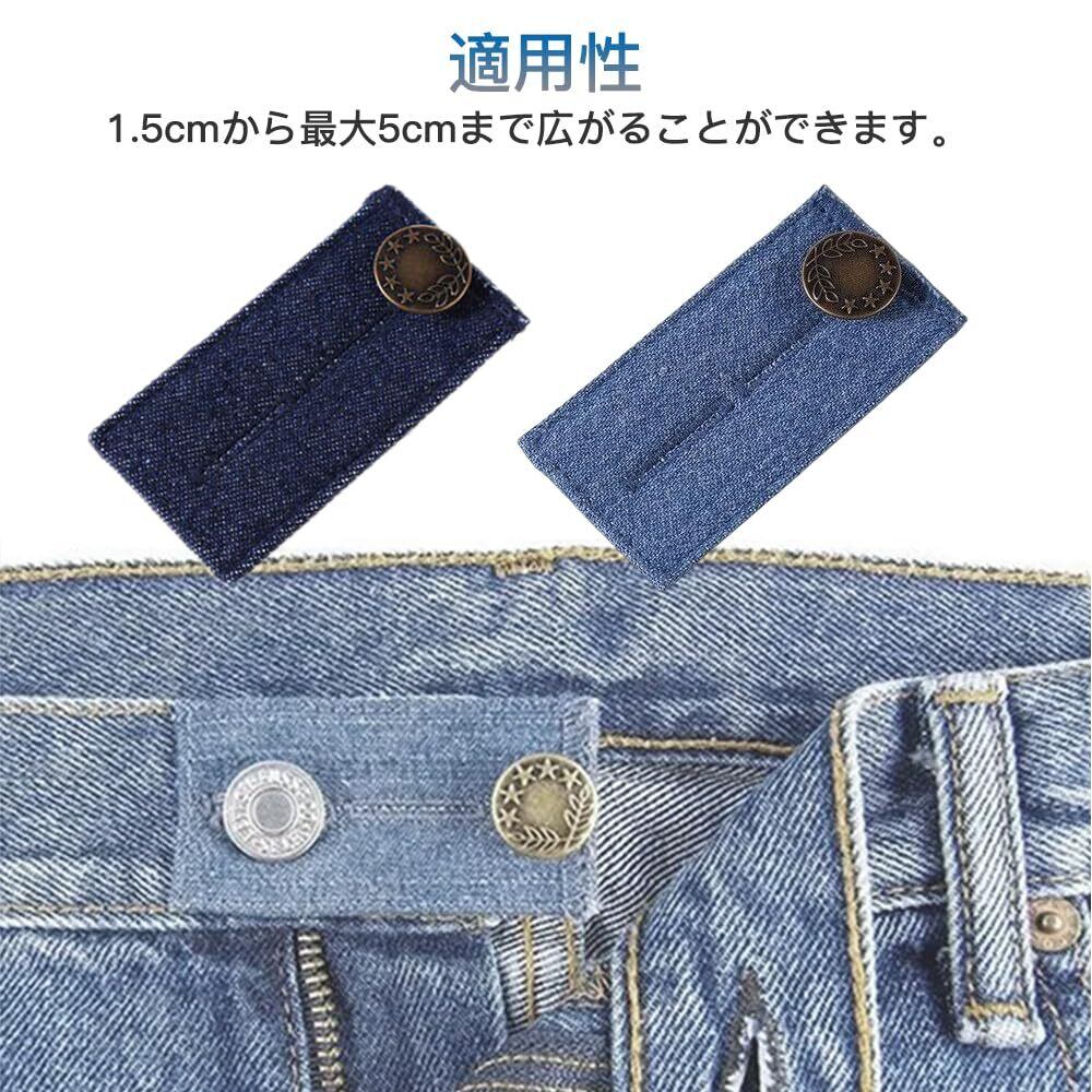 [サムコス] ウエスト調整 デニム ウエスト伸ばす ウエストサイズ調整 ウエスト調整お直し ウエスト エクステンダー 金属ボタン 裁縫不要 ジーンズ用 (B ライトブルー、ブルー、ダークブルー)