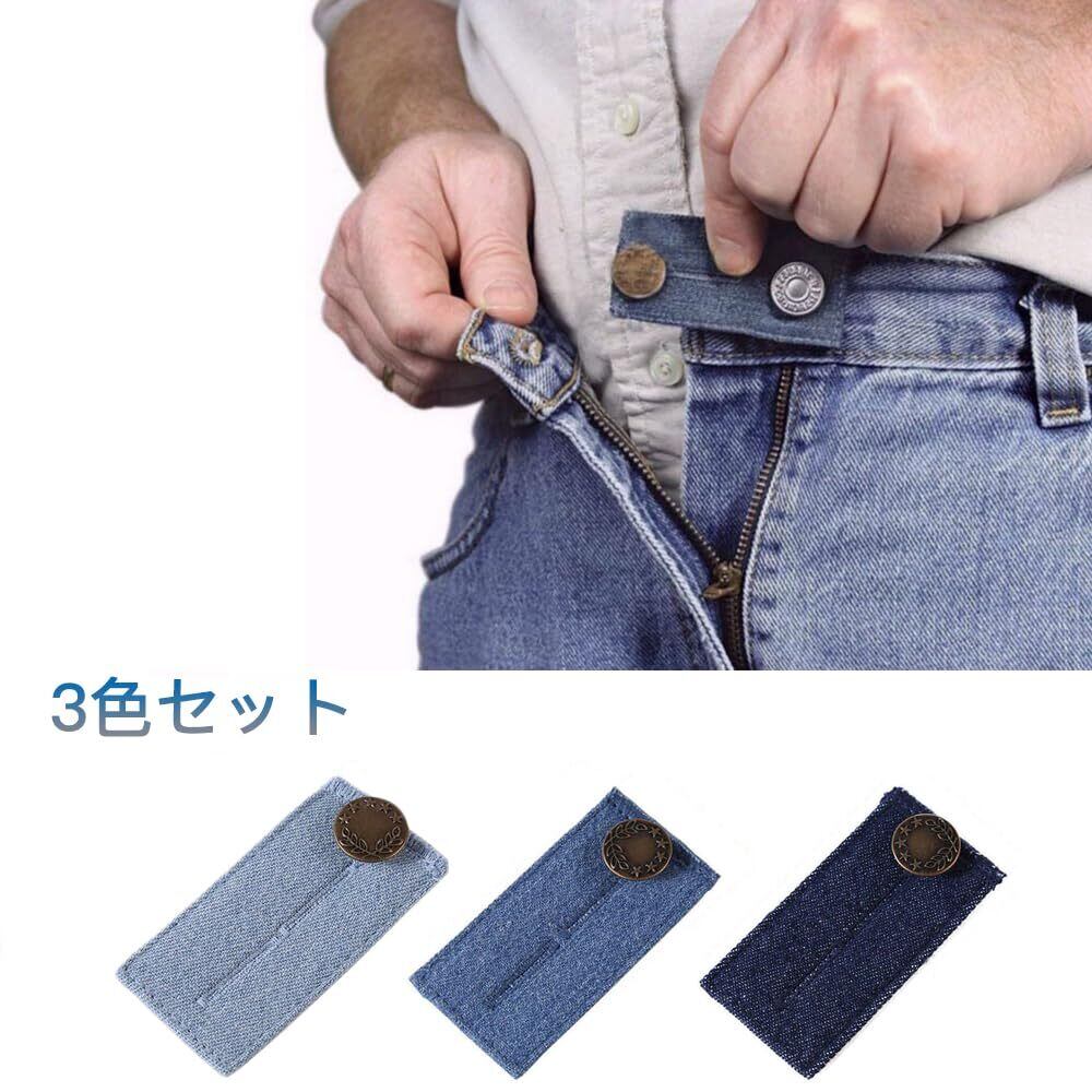 [サムコス] ウエスト調整 デニム ウエスト伸ばす ウエストサイズ調整 ウエスト調整お直し ウエスト エクステンダー 金属ボタン 裁縫不要 ジーンズ用 (B ライトブルー、ブルー、ダークブルー) | hananoki
