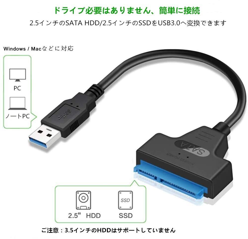 SATA-USB 変換ケーブル 2.5インチ SSD/HDD用 SATAケーブル 5Gbps 高速 SATA3 コンバーター USB3.0 2TB SSD/HDD 外付け 変換 コネクタ ハードディスク ポータブル(3.5インチのHDDは対応しておりません)