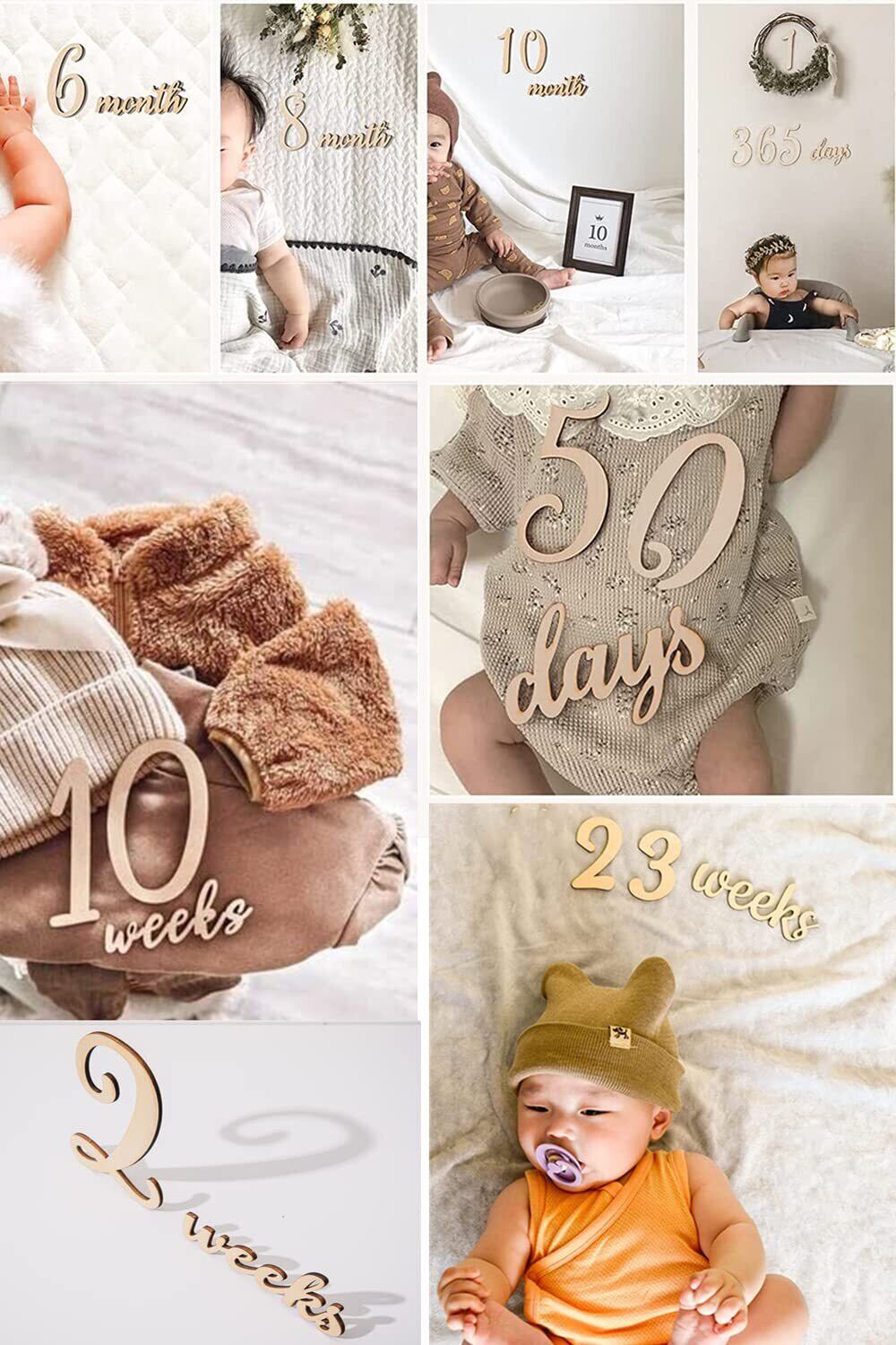【成長記録】日、週、月、年のマイルストーンをマークする木製彫刻、赤ちゃんのお誕生に応じて自由に組み合わせてパーソナライズしていただけます。妊娠期から出産後まで、すべてのマイルストーンになるお子様の成長を記録できるし、重要な日を美し記憶作りましょう。