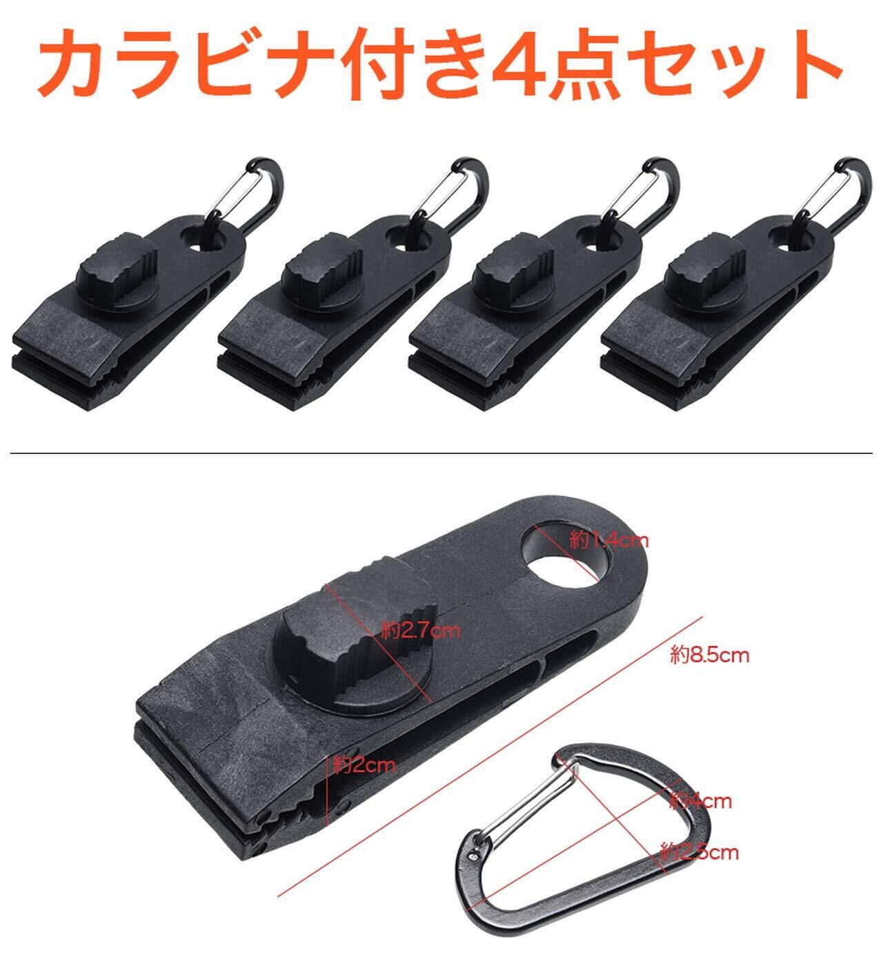 GoodsLand 【 4個セット & カラビナ 付き 】 タープクリップ 車 雨どい テントクリップ アリゲーター テントクランプ フック カラビナ ジョイントパーツ キャンプ アウトドア 用品 GD-SCRWTPC