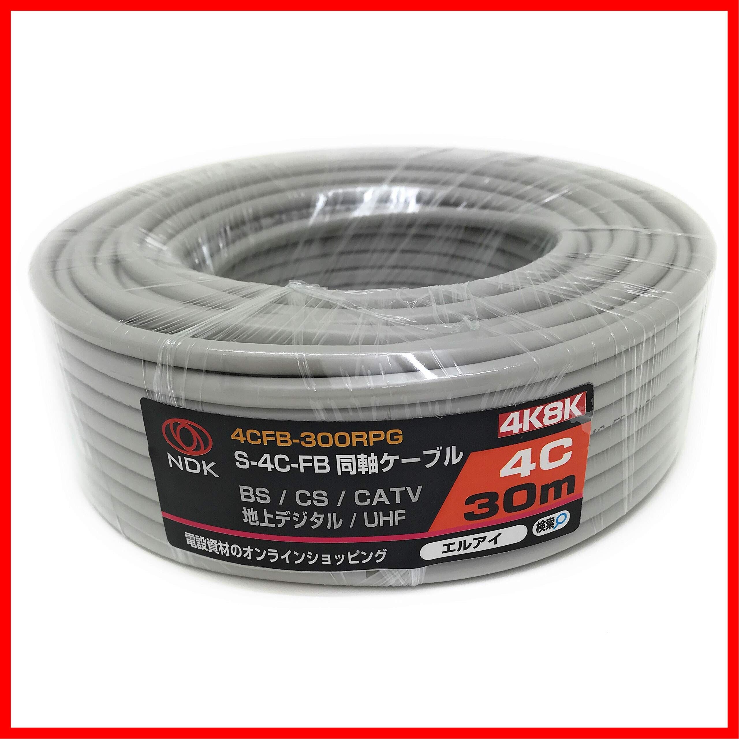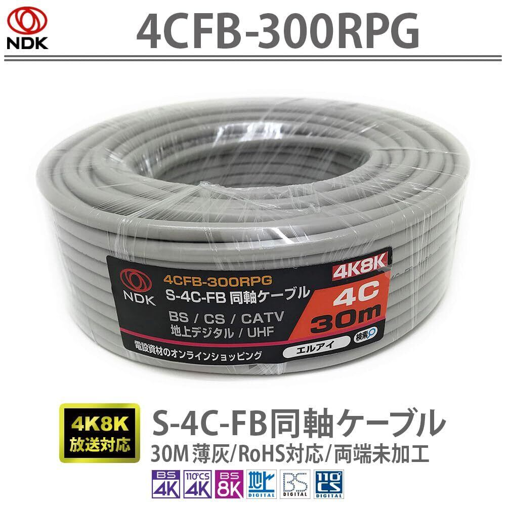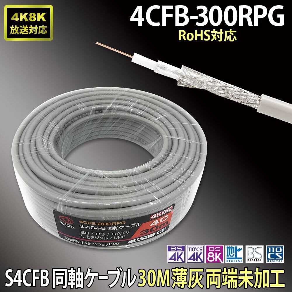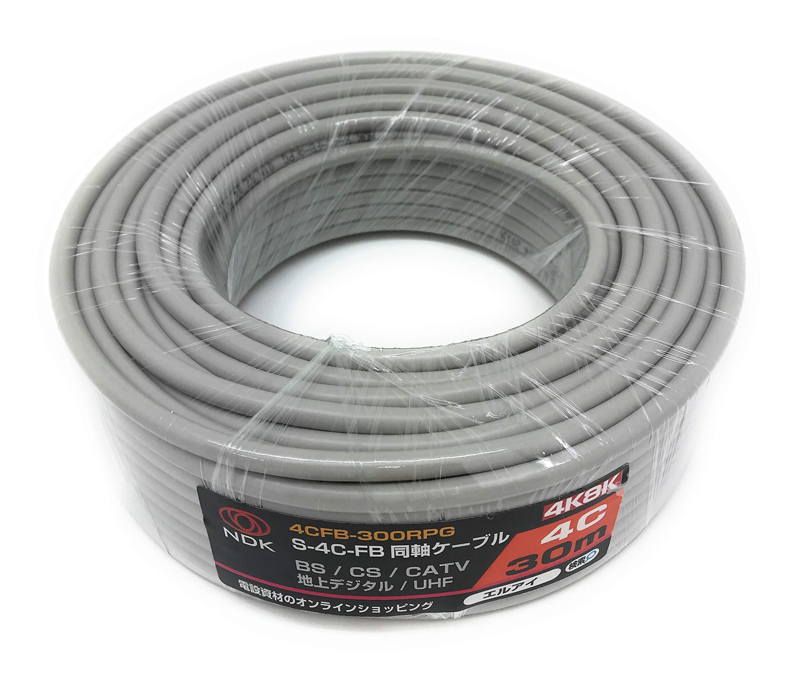 二幸電気工業 S4CFB 同軸ケーブル 30m 薄灰 (2K 4K 8K BS CS CATV 地デジ) アンテナケーブル 両端未加工 純銅素材の芯線導体 (4CFB-300RPG)