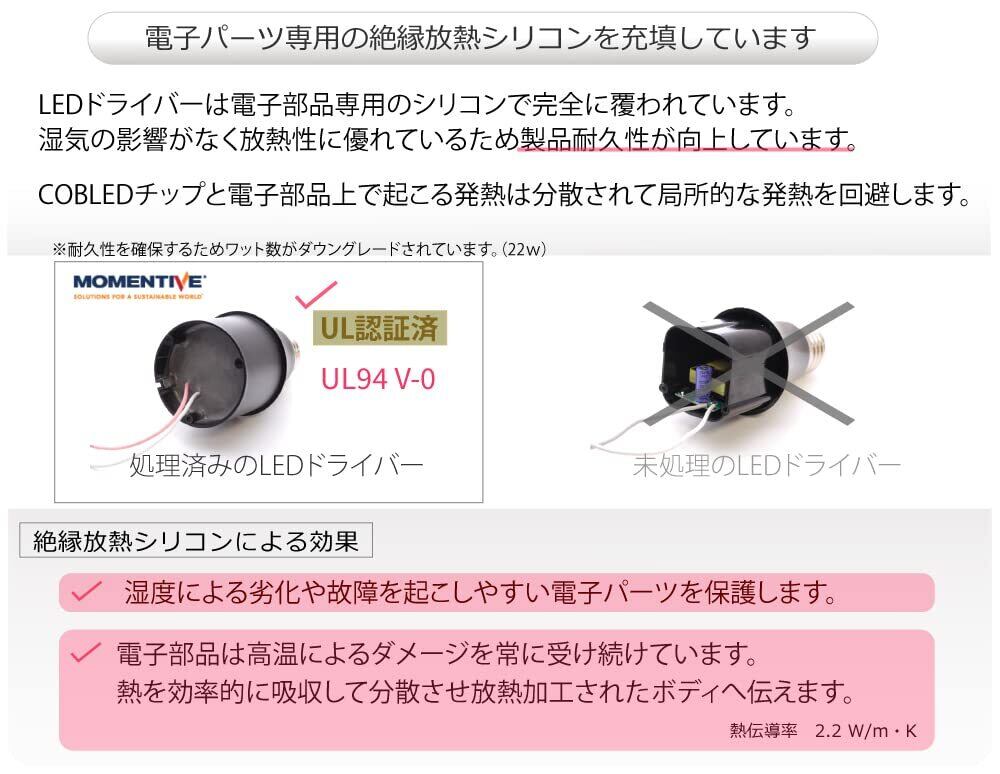 絶縁処理済みLEDドライバ(電子基板)を専用のシリコンで覆い製品耐久性や安全性を向上させています。