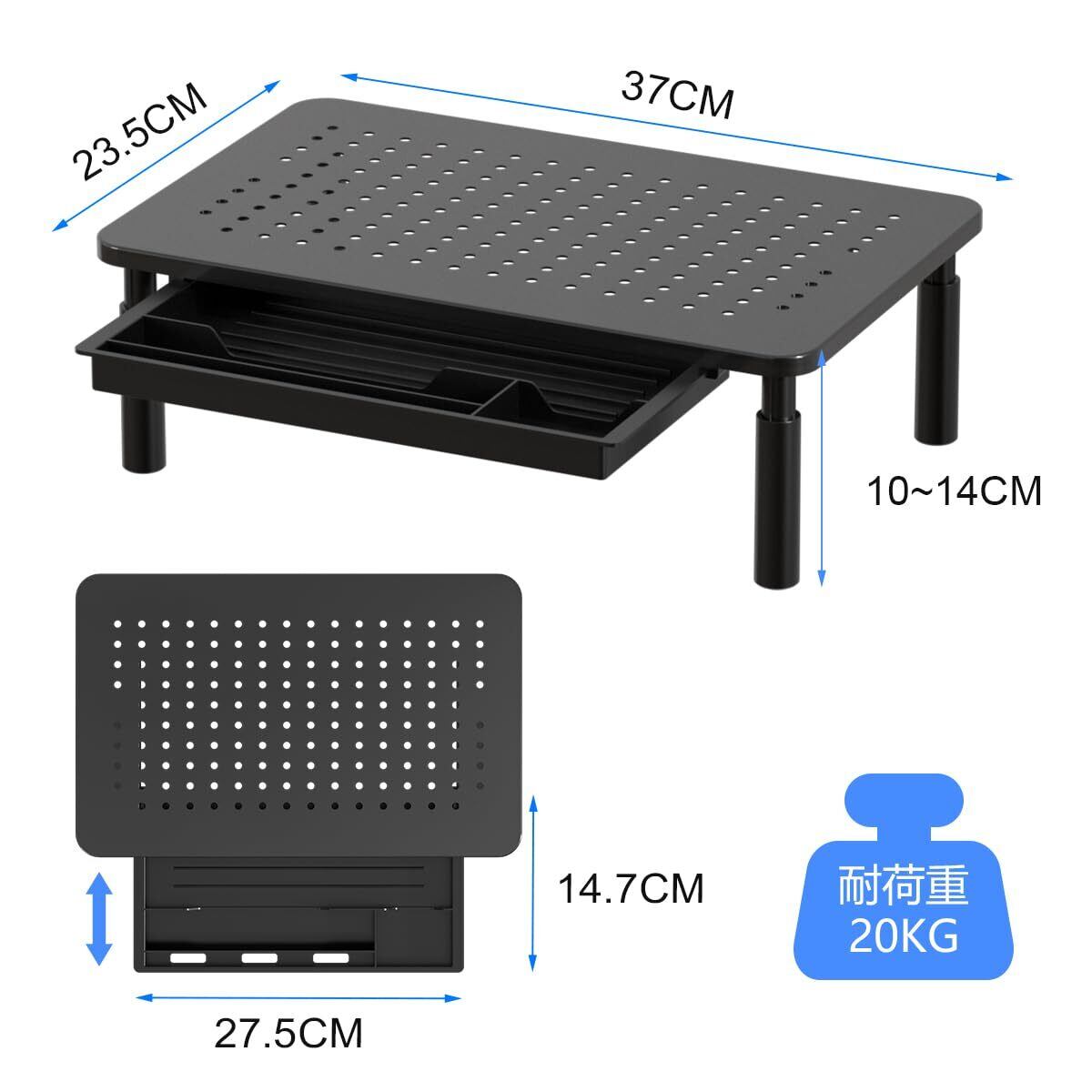 モニター台 引き出し付き机上台 PCスタンド 机上タック ディスプレイ台 高さ調整可能 滑り止めマット付き パソコンスタンド 姿勢改善 有孔ボード 卓上収納 文具収納 工具不要 耐荷重20㎏ MST003CT