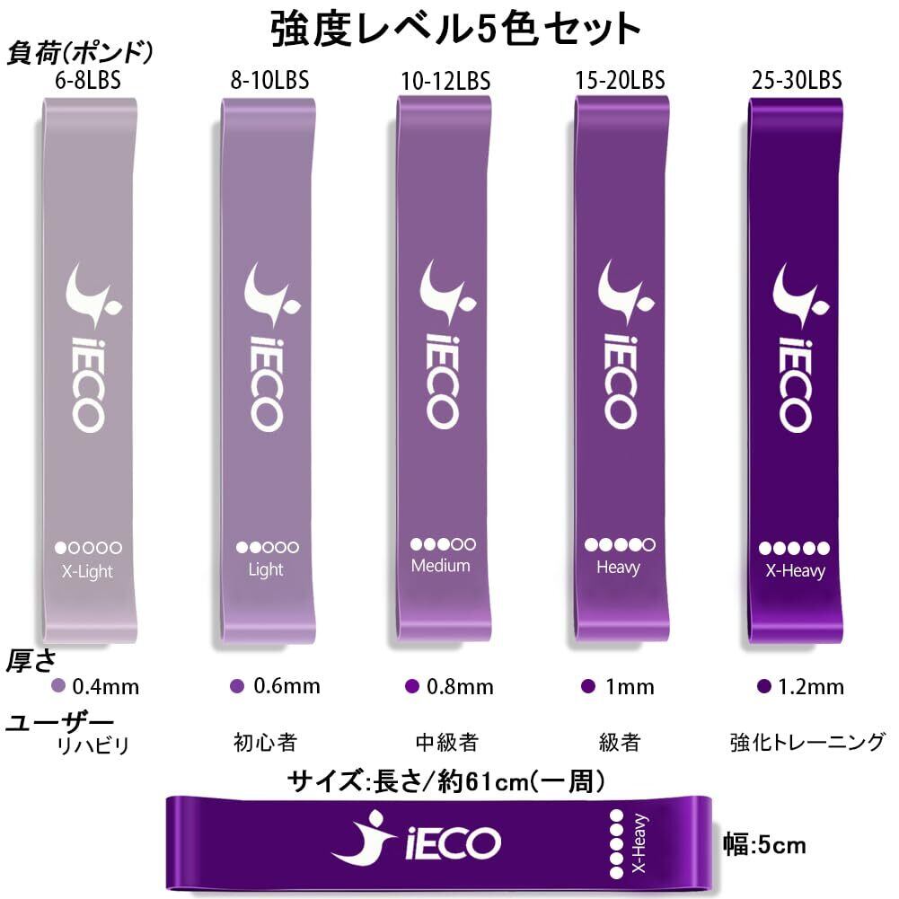 【負荷ごとの5つのカラー】負荷ごとにカラーが違い、コードが明記されているので一目で負荷を区別する事が出来ます。色別レベル: Green緑(弱い)、Yellow黄(やや弱い)、Orange橙(普通)、Blue青(強い)、Black黒(とても強い)。自分に適した負荷のバンドを使用することで、無理なく気軽にトレーニングが可能。また、家族や友人、恋人同士での共用もできるので
