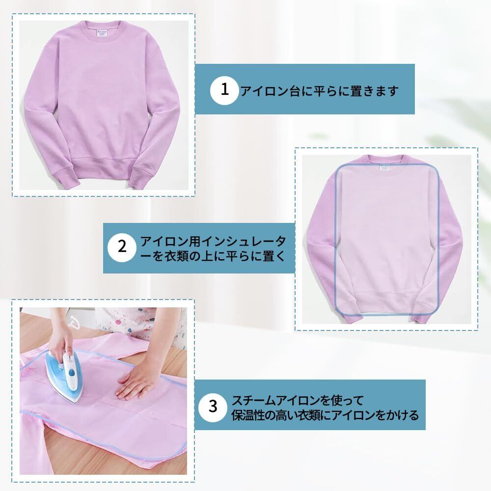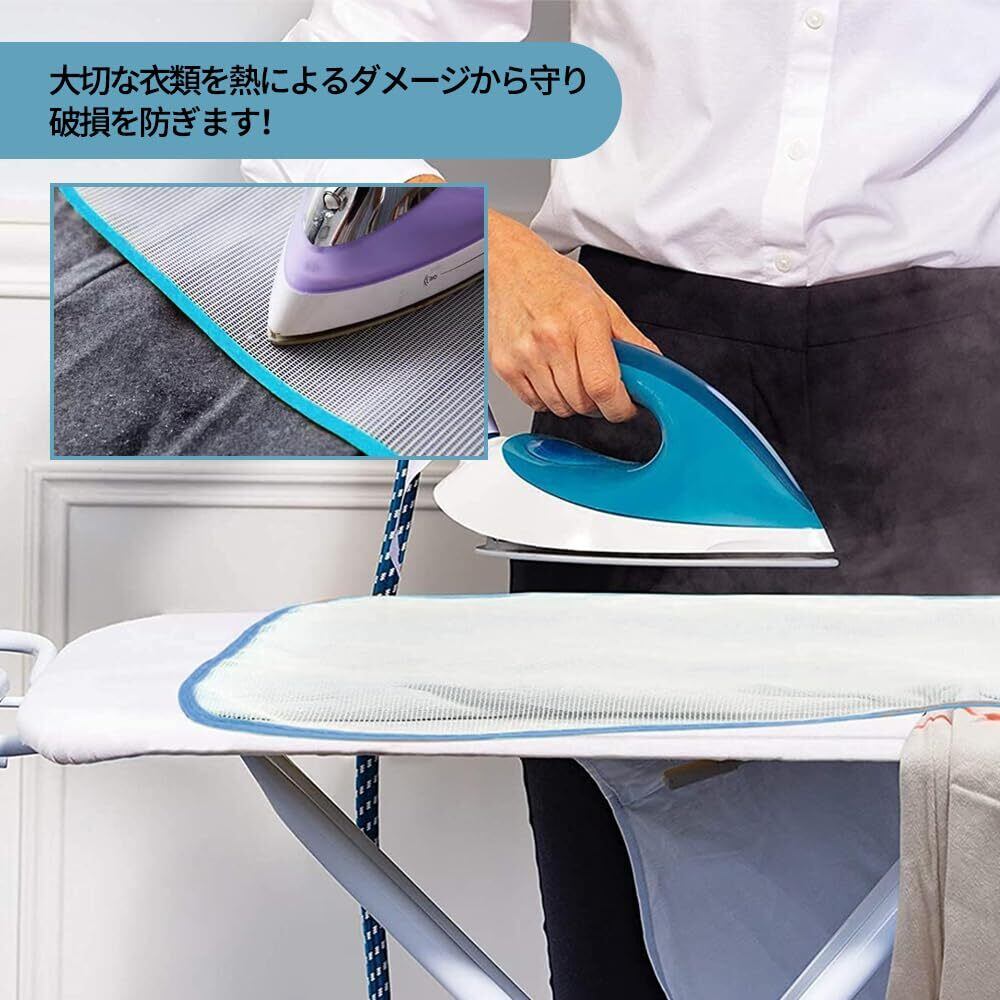 2.材質:メッシュ状の断熱シートで、ポリエステルを使用する。細かなメッシュが衣類の蒸気や熱に効果的に触れると同時に、過度な熱による衣類へのダメージを防ぎ、製品自体も高耐熱で繰り返し使用できます。