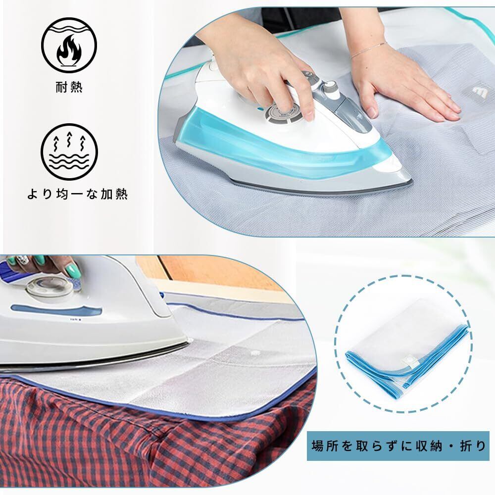 1.サイズ:40cm*60cm,2個,ブルー,ネットアイロンマット。ポリエステル滑り止めアイロンマットアイロンをかけたい衣類の上に置き、蒸気と熱だけを通し、アイロンが直接衣類に触れないようにする。
