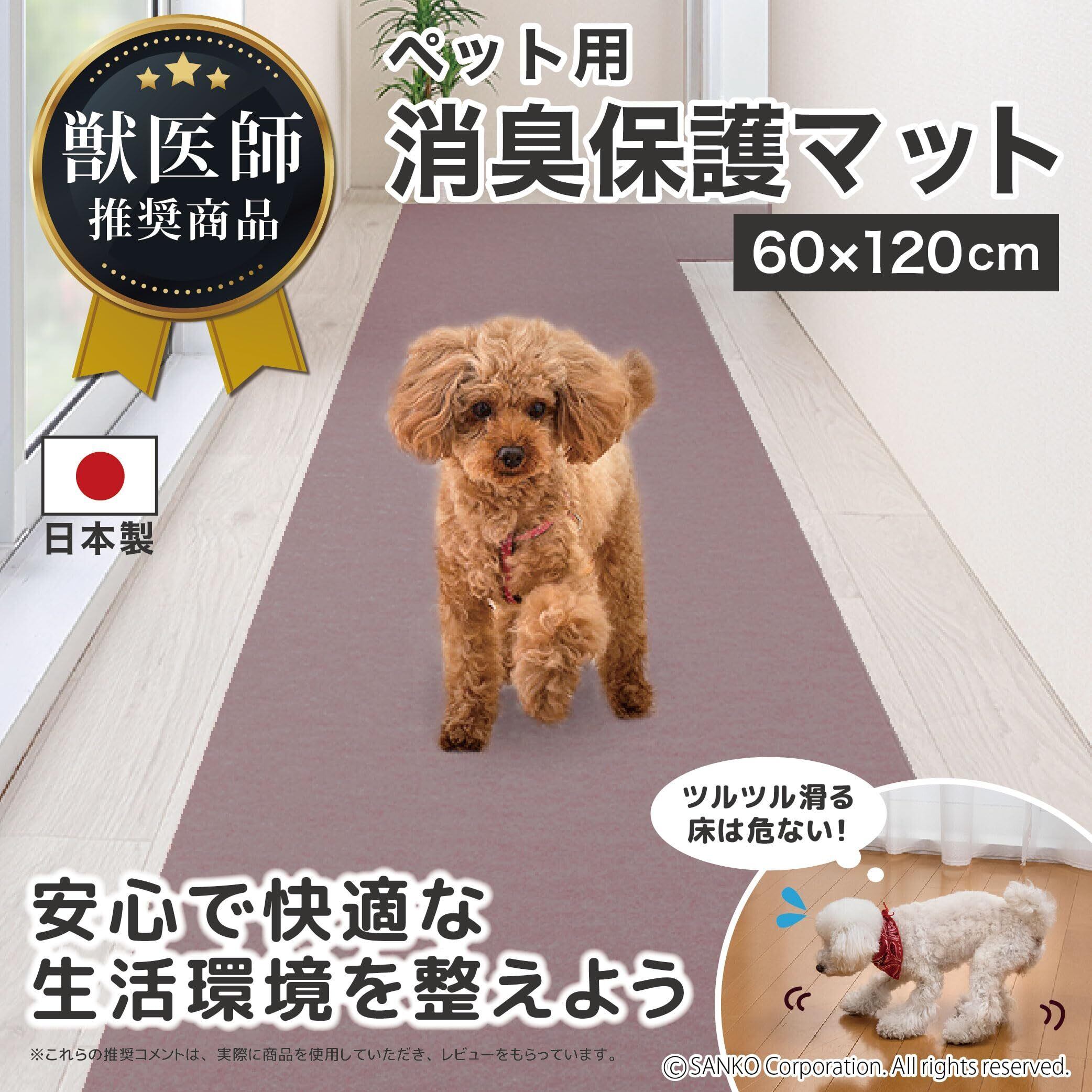 サンコー おくだけ吸着 獣医師推奨 ペットマット 消臭保護 60×120cm ブラウン BR ロングマット 汚れ防止 【日本製 撥水 消臭 洗える ハサミでカット可】 KG-09