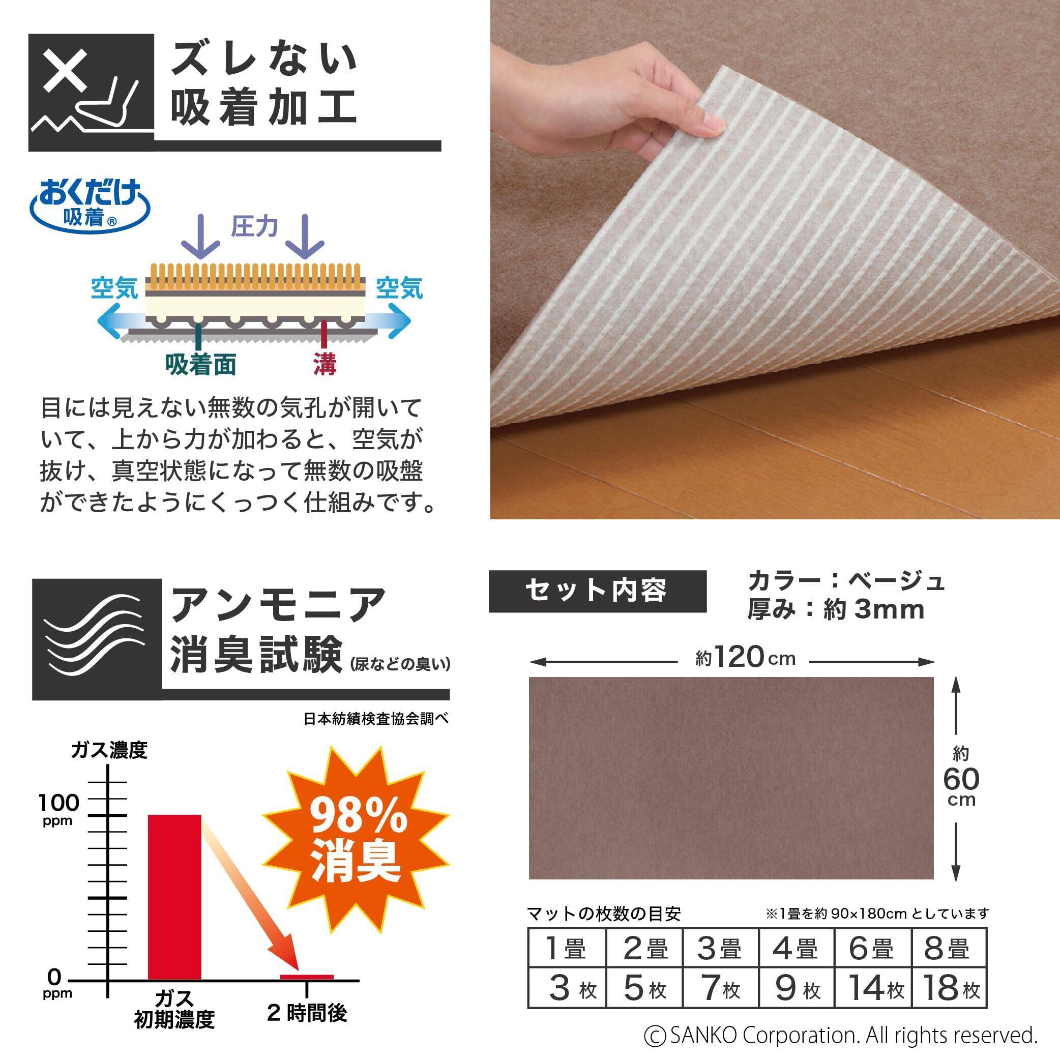 サンコー おくだけ吸着 獣医師推奨 ペットマット 消臭保護 60×120cm ブラウン BR ロングマット 汚れ防止 【日本製 撥水 消臭 洗える ハサミでカット可】 KG-09 | hananoki