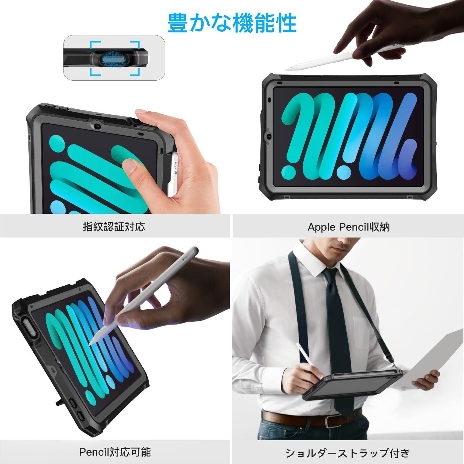 Tmacjump iPad mini7 ケース (A17 Pro 2024モデル、第7世代)、iPad Mini6 ケース(2021モデル、第6世代) 8.3インチ IP68 完全防水 防塵 耐衝撃 ペン収納 保護フィルム付 TouchID認証対応 キックスタンド ショルダーストラップ お風呂 キッチン 作業現場等に活躍 アイパッド ミニ6 ミニ7 全面保護ケース【適格請求書発行可能】