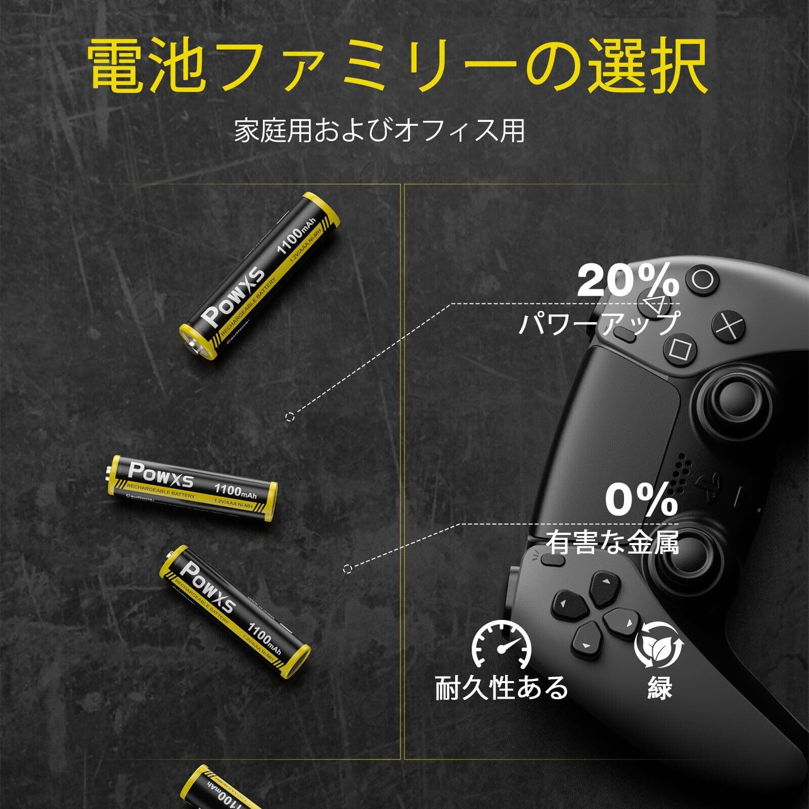 POWXS 単4電池 充電式 単四充電池 高容量 ニッケル水素電池 1100mAh 約1300回使用可能 8本入り 液漏れ防止 充電池 単4 単4充電池 (アップグレード 黒+黄)
