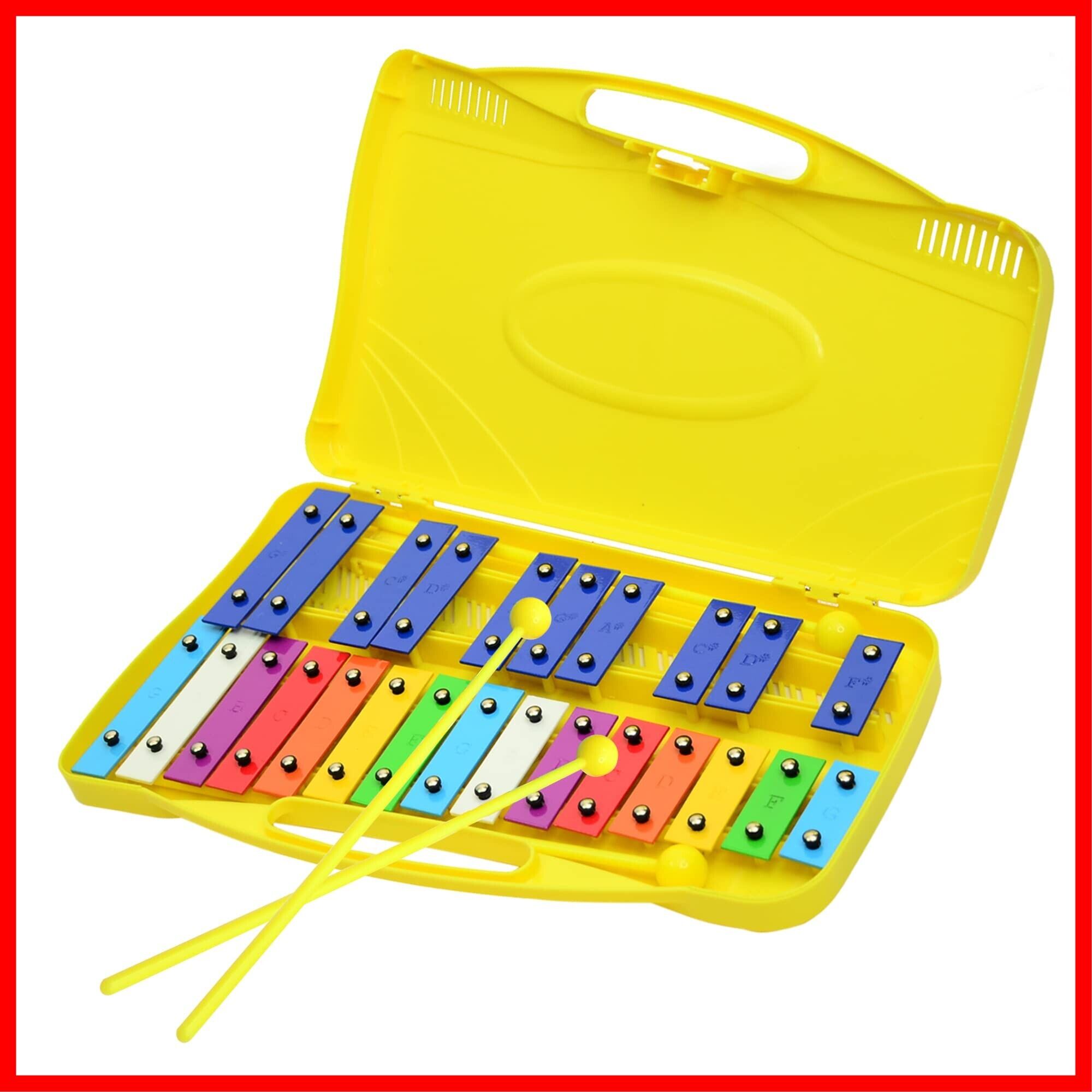 BQKOZFIN 鉄琴 カラフル 25音 オルフ楽器 卓上鉄琴 パーカッション 音楽ギフト 音楽教育ツールミュージカル教材 2マレット付き (イエロー)