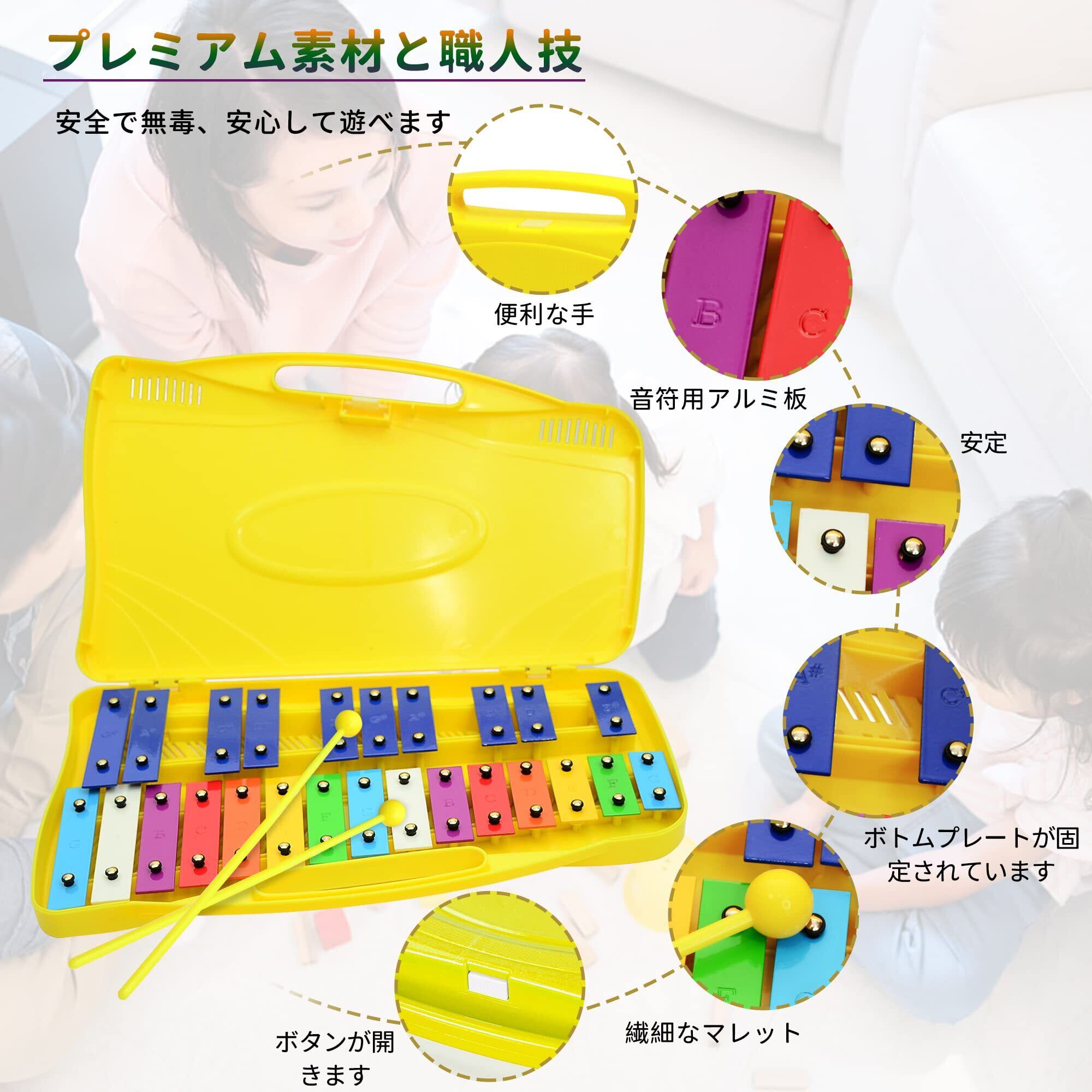 【安全で思いやりのあるデザイン】滑らかな表面、鋭いエッジのない、子供が遊ぶのに非常に安全。金属製の鍵は取り外しができず、にやさしい。木槌は鉄琴に置くことができ、もうなくすことはありません。
