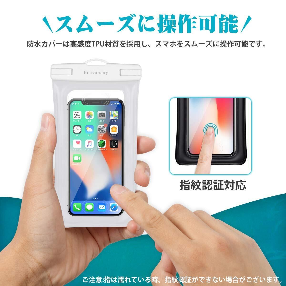 【最新TPU素材でタッチ快適】従来品と違って弊社の携帯防水ケースは最新改良素材TPU素材を採用し、強度&透明度&感度がアップ!iPhone・Androidを問わず、ケースにいれたまま濡れた手でも指紋認証、タッチパネル操作や通話などのことが可能。両面透明、クリアな大画面でプール、海の水中での撮影や鑑賞に最適!水中撮影も楽々!