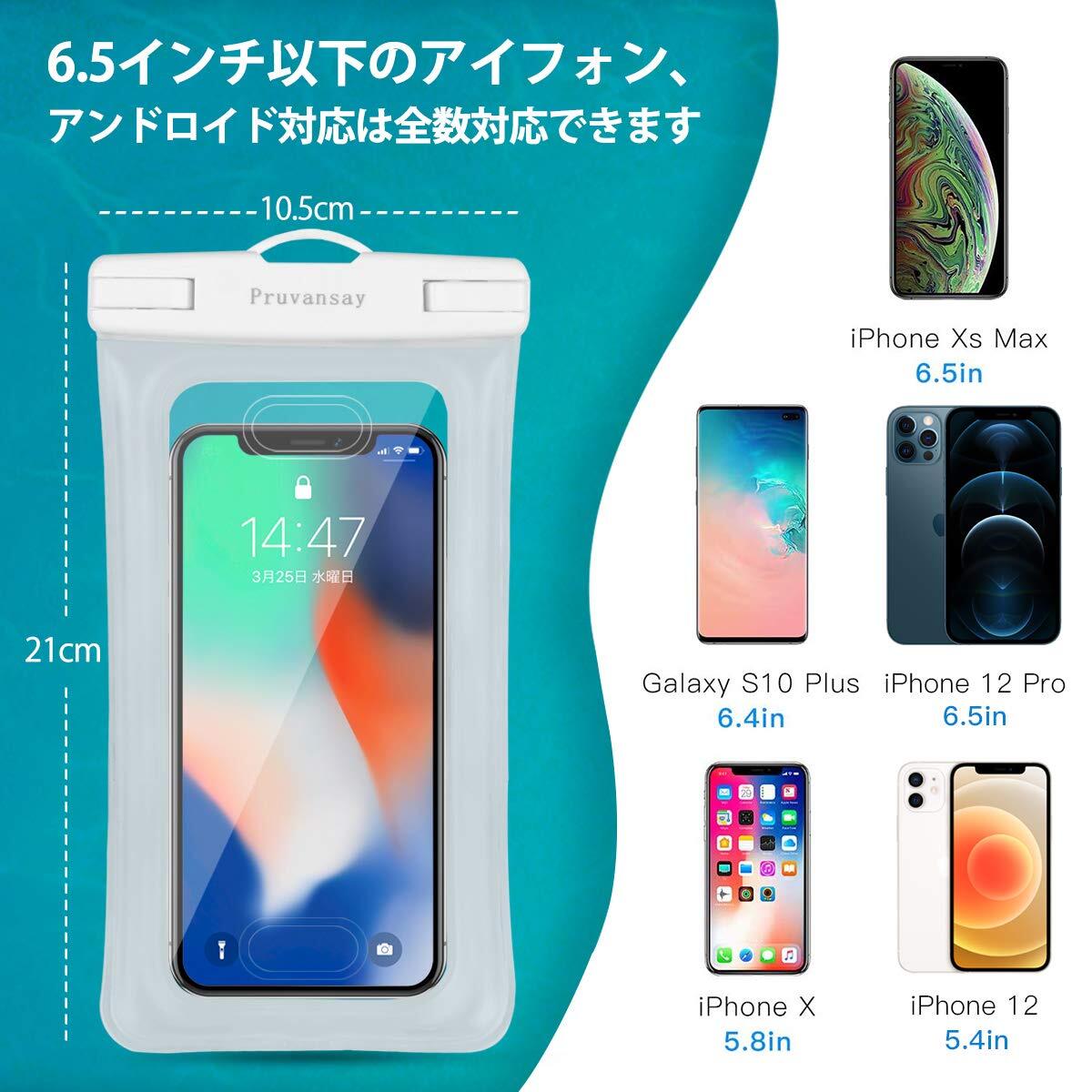 防水ケース【新登場&指紋認証/Face ID認証対応】スマホ用 IPX8認定防水 360°保護 防水携帯ケース タッチ可 顔認証 気密性 iPhone15 14 13 Pro XS MAX XR X8 Samsung galaxy S23 S22 Huawei P50 P40 Mate40 Proに対応 7インチ以下全機種対応 防水カバー 水中撮影 お風呂 海水浴 水泳 雨の日など適用 透明