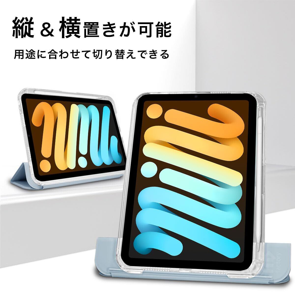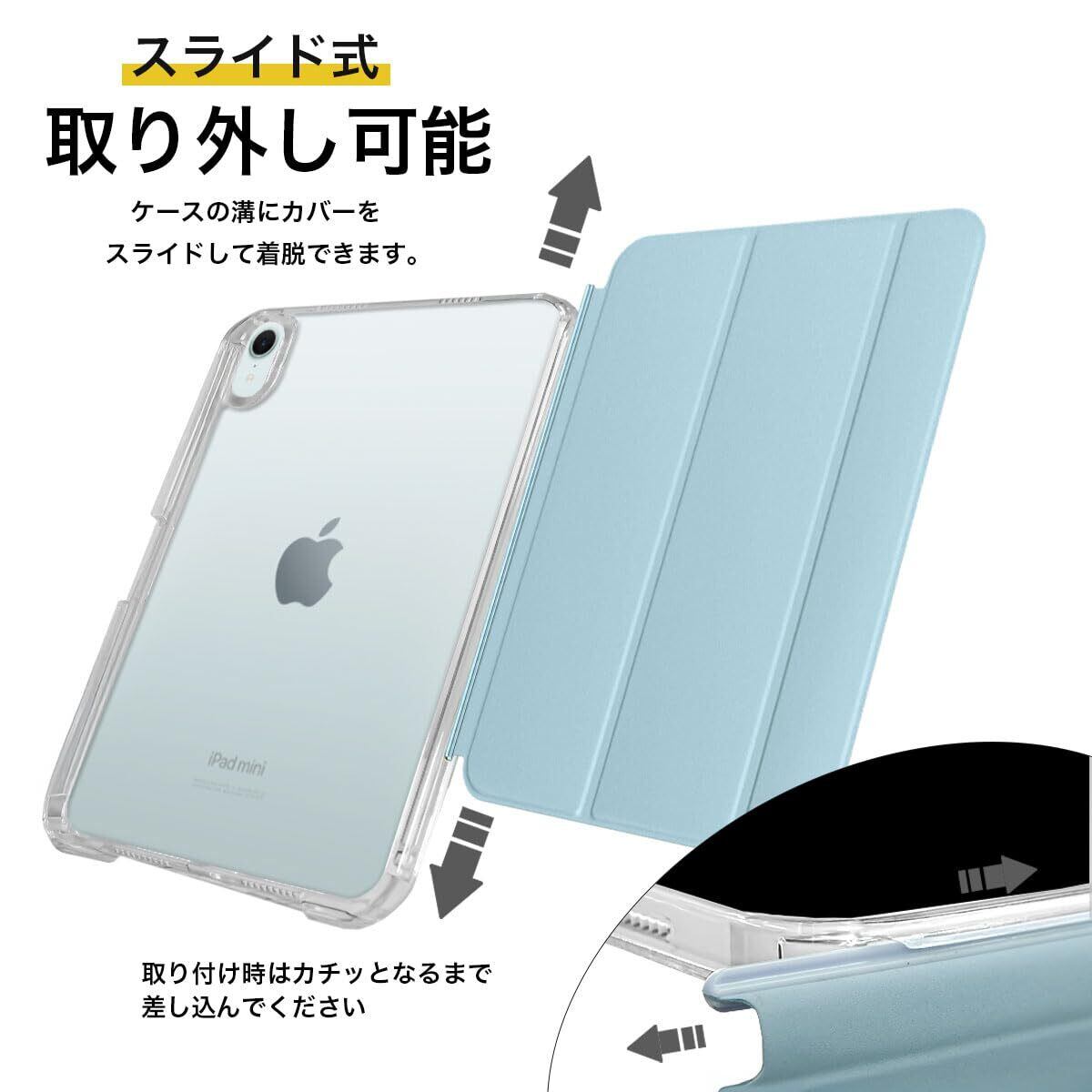 MS factory iPad mini 7 6 用 ケース mini7 (A17 Pro 2024 第7世代) mini6 (2021 第6世代) ペン収納 取り外し可能 軽量 耐衝撃 カバー 縦置き/横置きスタンド アイパッドミニ ソフトフレーム 背面透明 ペールスカイブルー 水色 IPDM6-SLDPEN-PSK | hananoki