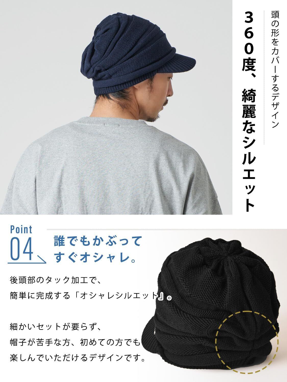 【蒸れずにサラッと、年中快適】コットンを含んだ柔らかい素材は通気性抜群。汗や湿気によるべたつき、不快感を軽減します。かぶり口のロールで帽子にボリューム感が出て、小顔効果もバッチリ。また汚れたり汗をかいても手洗い洗濯可能でいつでも清潔。