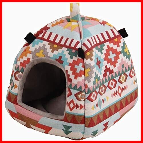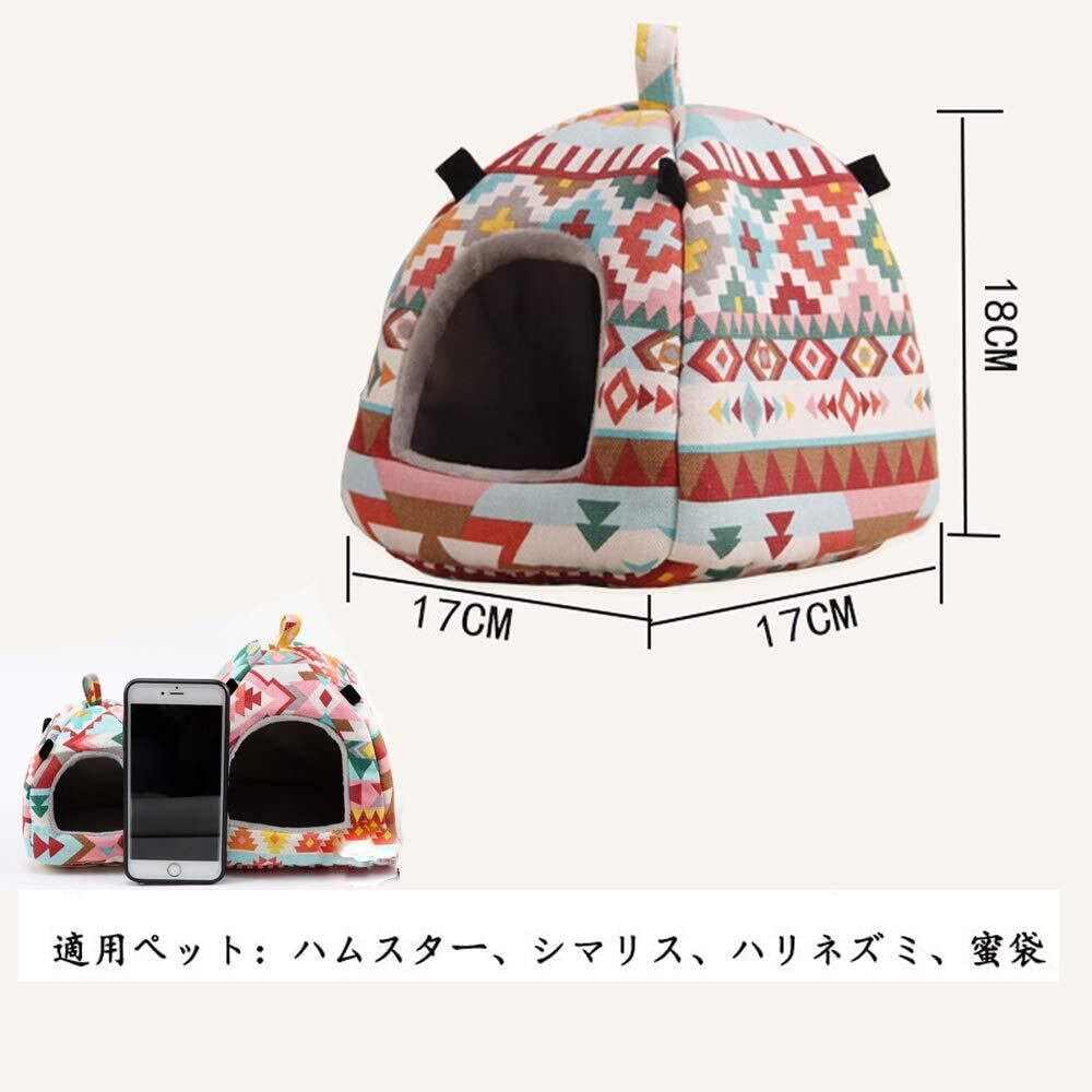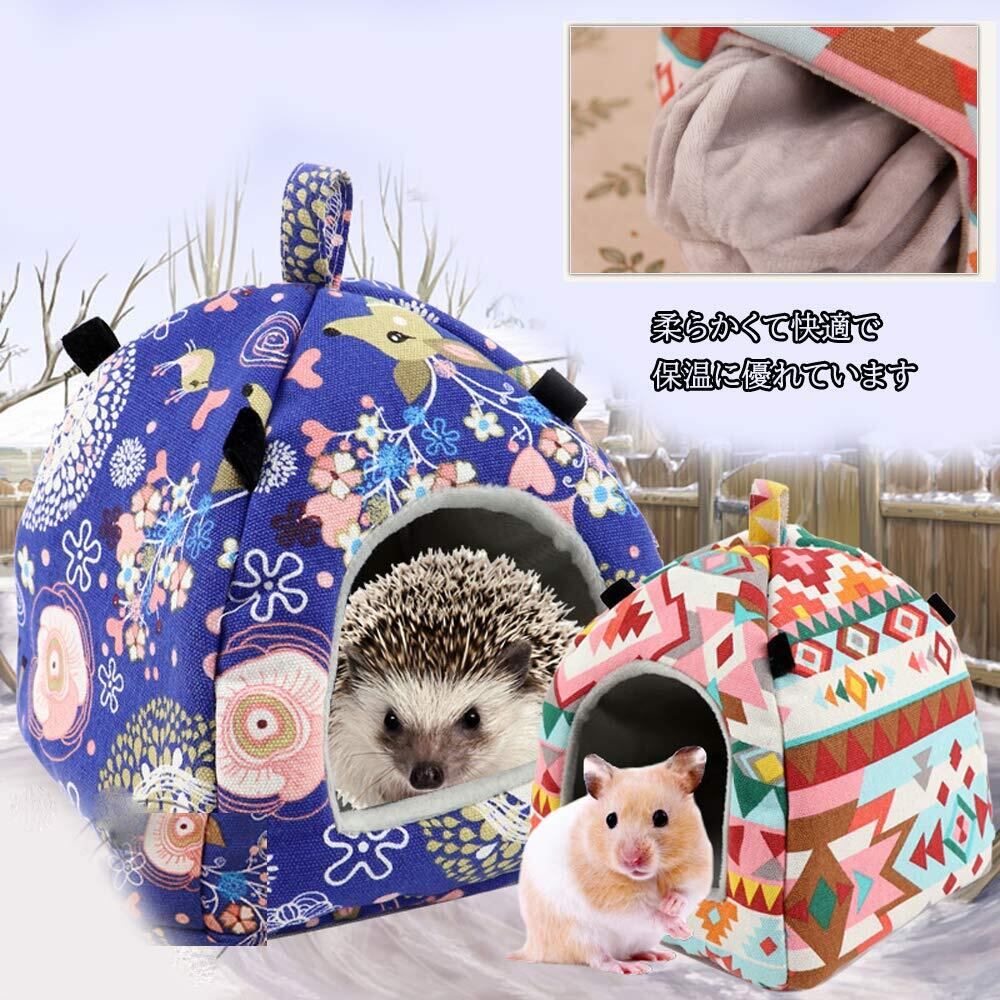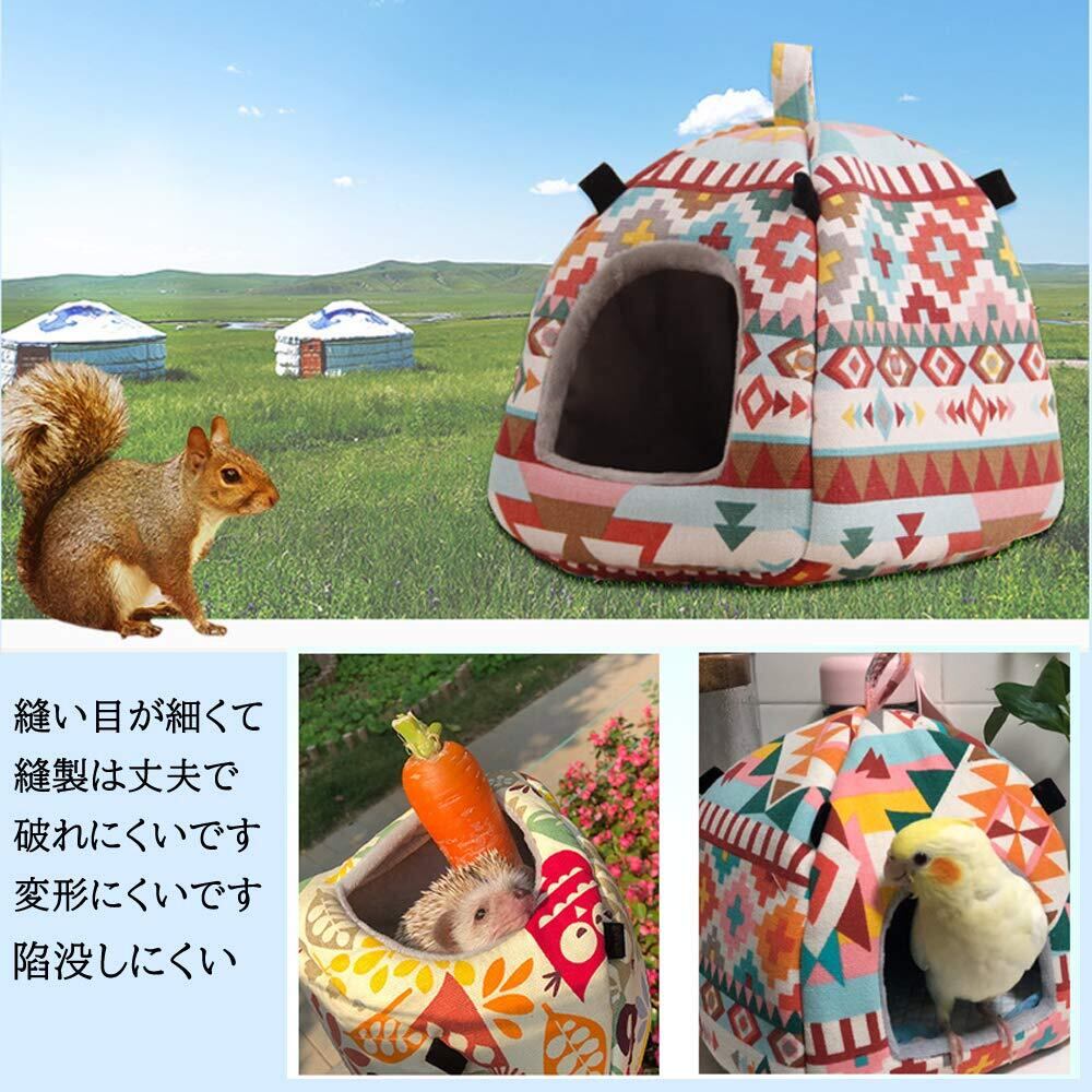 ハムスター ハウス ふわふわ家 ゲージ 吊り下げる鳥暖かい巣箱 ハムスターハンモック ハリネズミ ハウス ドーム型冬用ペットベッド 小動物ハウス 遊び場 寝床(Sサイズ-14x14cm,民族风) | hananoki