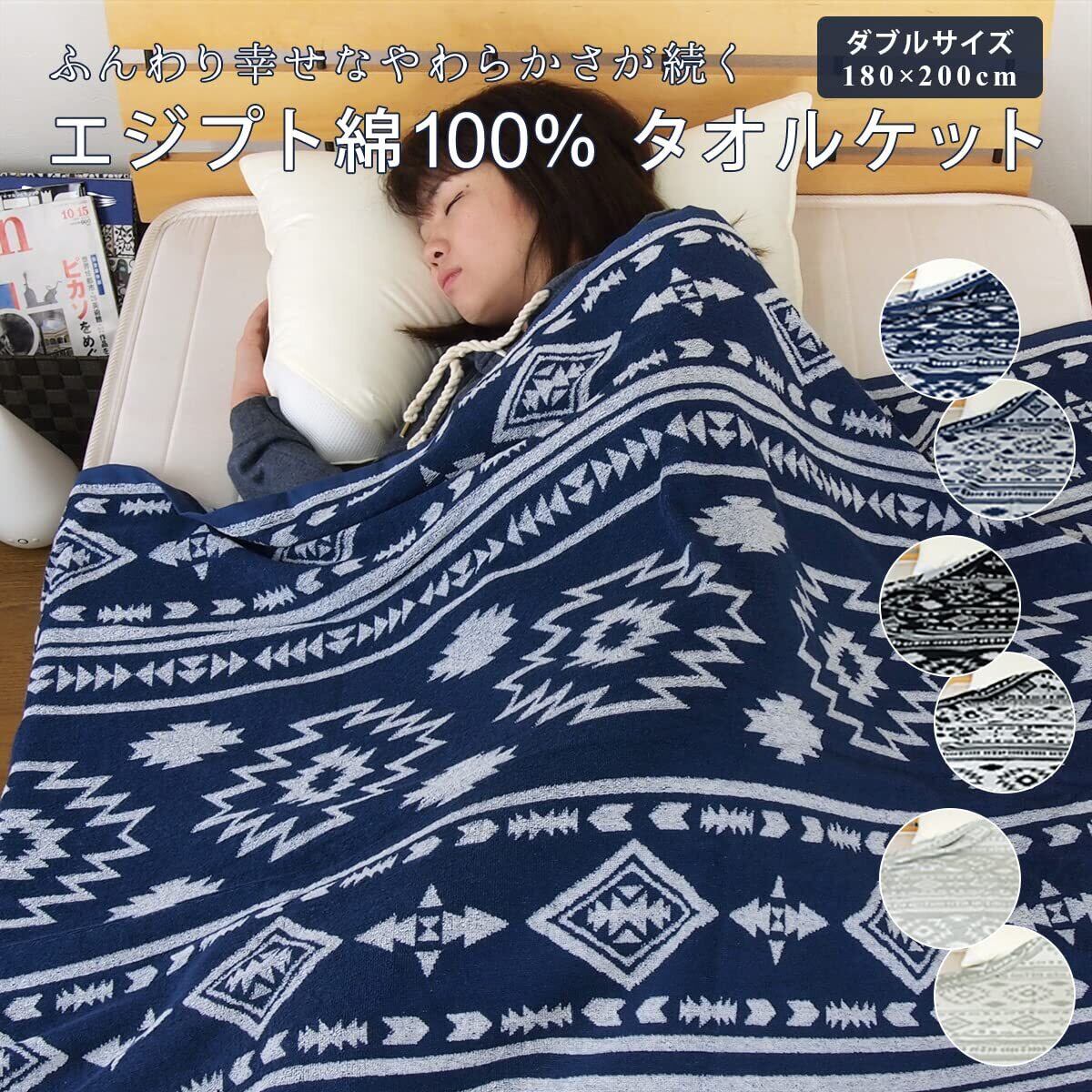 ふっくら軽くやさしい風合い、高級綿の代表格であるエジプト綿100%のタオルケット。通常のコットンに比べて丈夫なため、お洗濯を繰り返しても毛羽立ちにくく風合いが損なわれません。使っていてもボリュームが減りにくく、へたりにくい。天然素材でお肌のデリケートな方も安心、冬場は毛布代わりにとオールシーズン使える良質なタオルケットです。ソファーカバーやキャンプ用にご使用される方も多いです。
