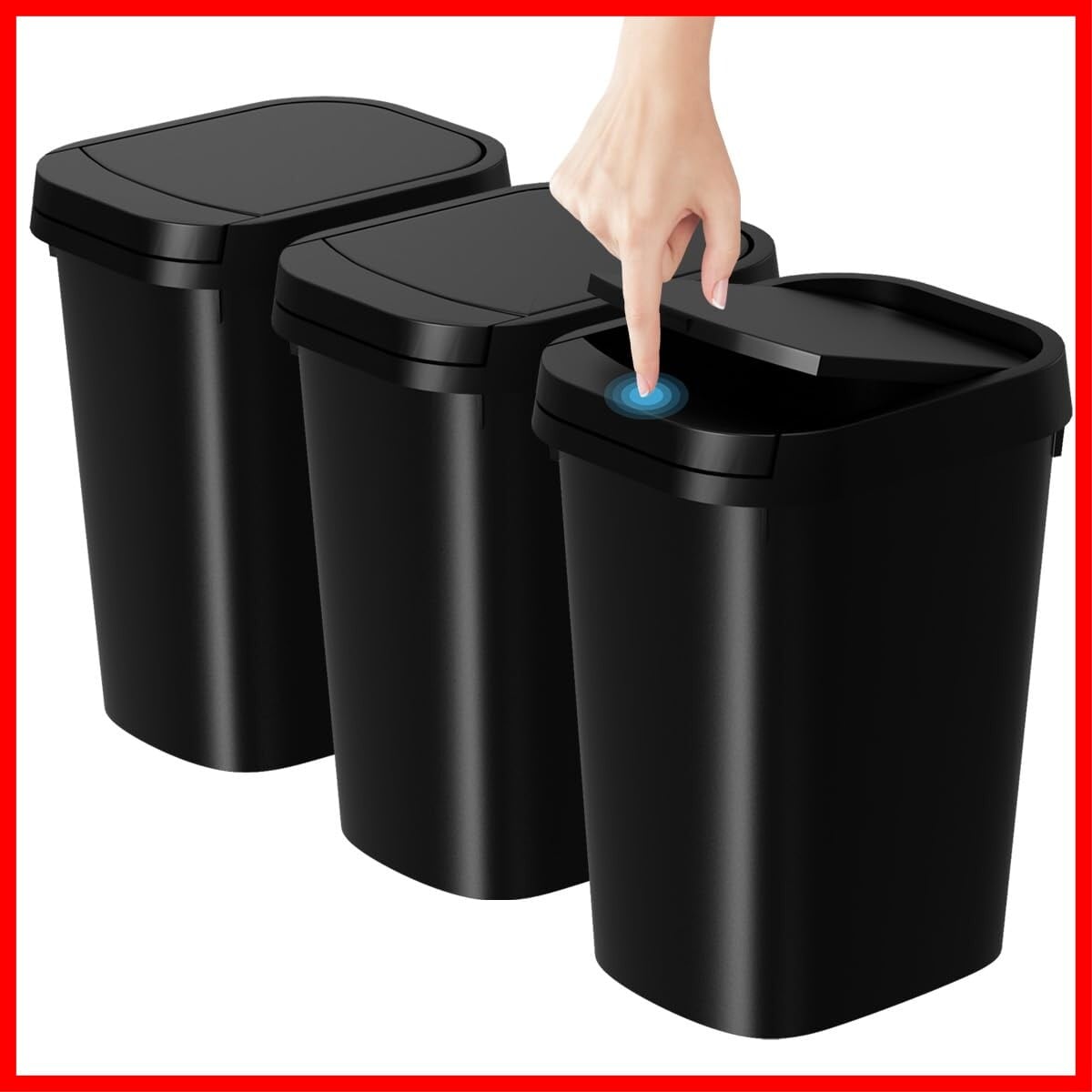 TZAVE ゴミ箱 ふた付き 3個組(9.5L) ゴミ箱 スリム おしゃれ 蓋付きごみ入れ 塵箱 幅18×奥行23×高さ31cm ブラック