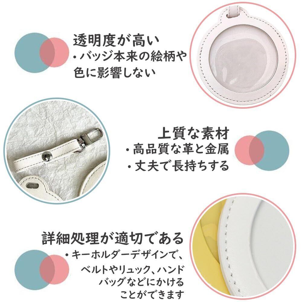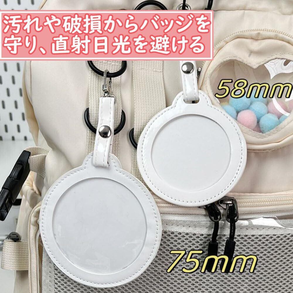 サムコス 缶バッジカバー PUレザー 缶バッジ キーホルダー式 2枚セット 透明 保護カバー コレクション ディスプレイ 缶バッジの保護 傷防止 収納 痛バッグ アニメグッズ 本命 CP 写真フレーム 丸バッジ ホワイト