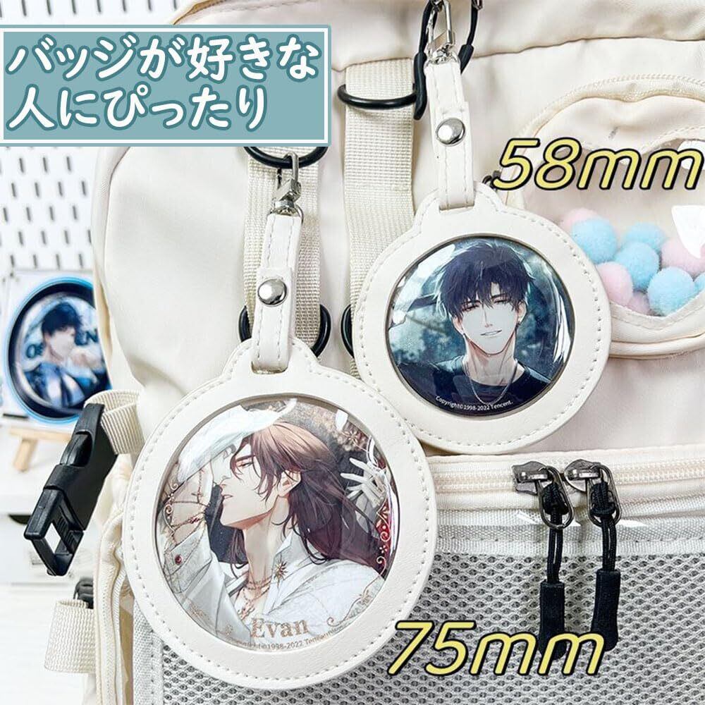 サムコス 缶バッジカバー PUレザー 缶バッジ キーホルダー式 2枚セット 透明 保護カバー コレクション ディスプレイ 缶バッジの保護 傷防止 収納 痛バッグ アニメグッズ 本命 CP 写真フレーム 丸バッジ ホワイト | hananoki