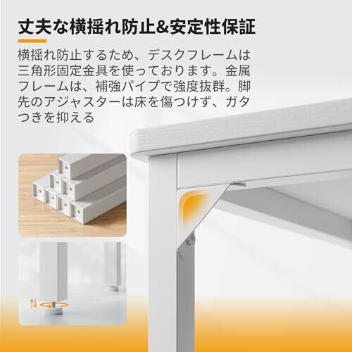 【安定性&耐用性】横揺れ防止するため、デスクフレームは三角形固定金具を使っております。天板は水・熱・傷・汚