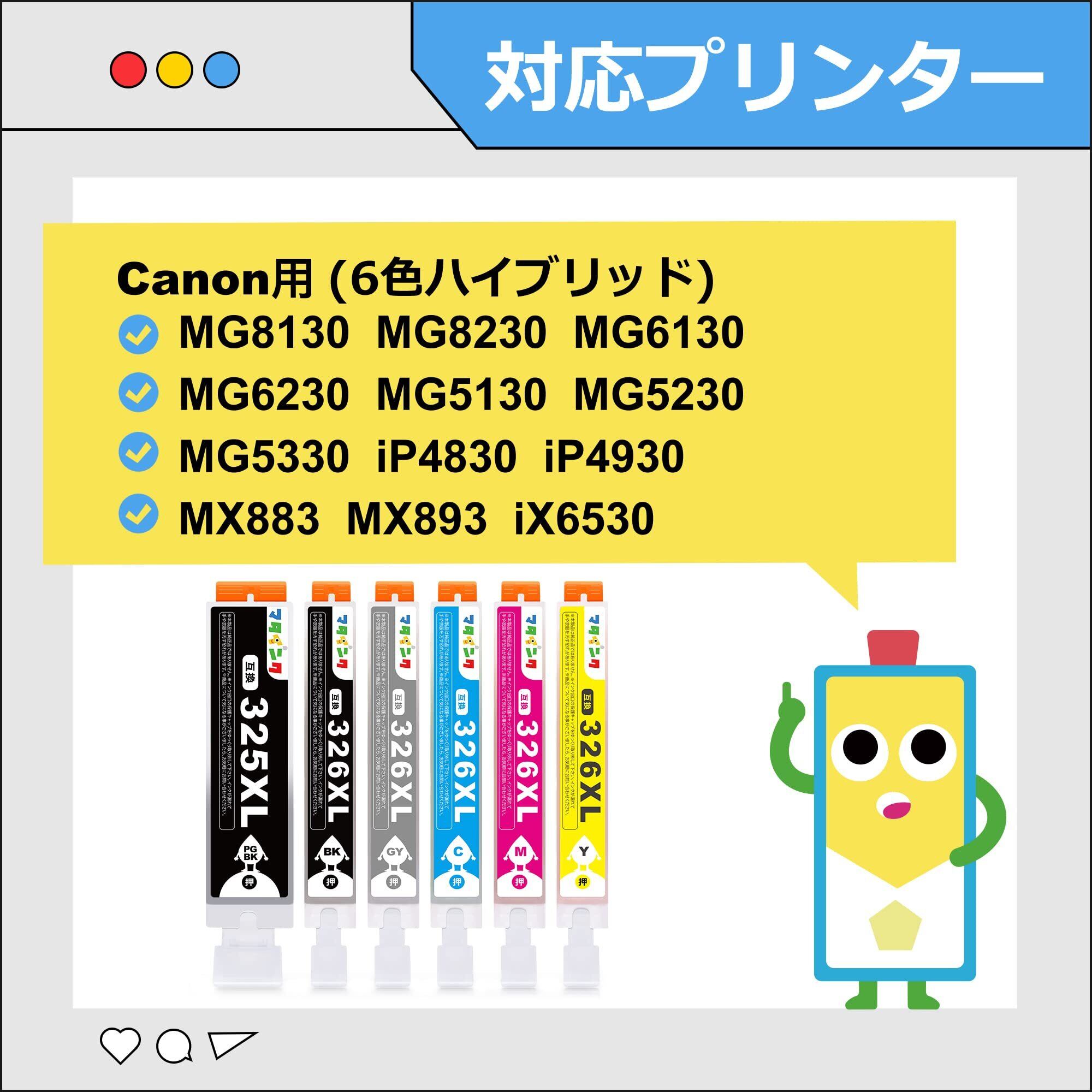 マタインク BCI-326XL BCI-325XL キヤノン用 インク 326 325 6色マルチパック Canon用 インク 326 325 大容量タイプ BCI-325 BCI-326 対応機種:プリンターMG5130 MG5230 MG6130 MG6230 MG8130 MG8230 iP4830 iP4930 MX883 MX893 iX6530 インク | hananoki
