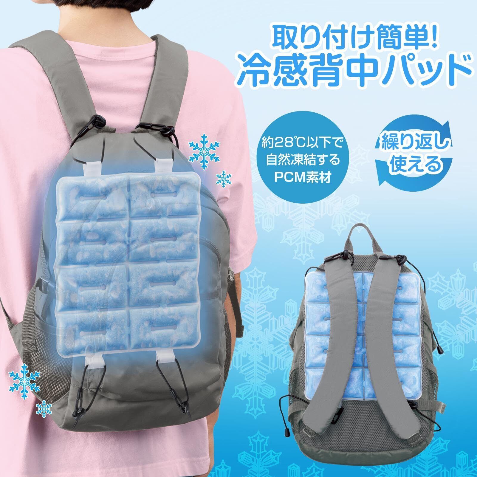 コモライフ 冷感背中パッド 冷感 パッド 保冷 リュック 背中 自然凍結 PCM 熱中症 暑さ 対策 グッズ