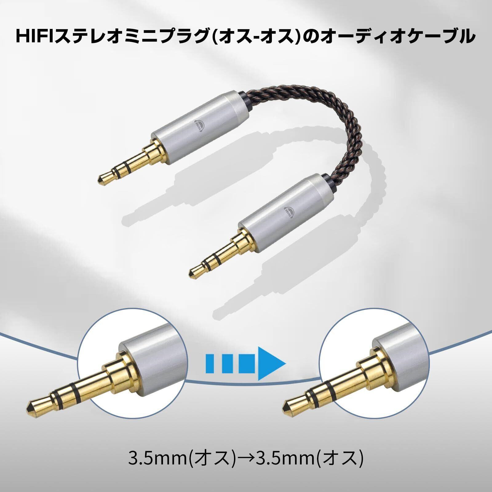 okcsc AU8 オーディオケーブル ステレオミニプラグ AUXケーブル 両側オスオス 3.5mm(オス)→3.5mm(オス) 8芯 OFC 金メッキ スマートフォン、アンプ、オーディオプレーヤー等に適用 約15cm